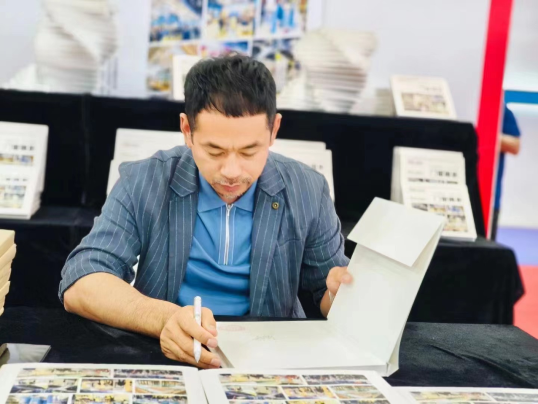 多玛天窗总经理金延亮先生为现场的读者签名、钤印,合影留念。