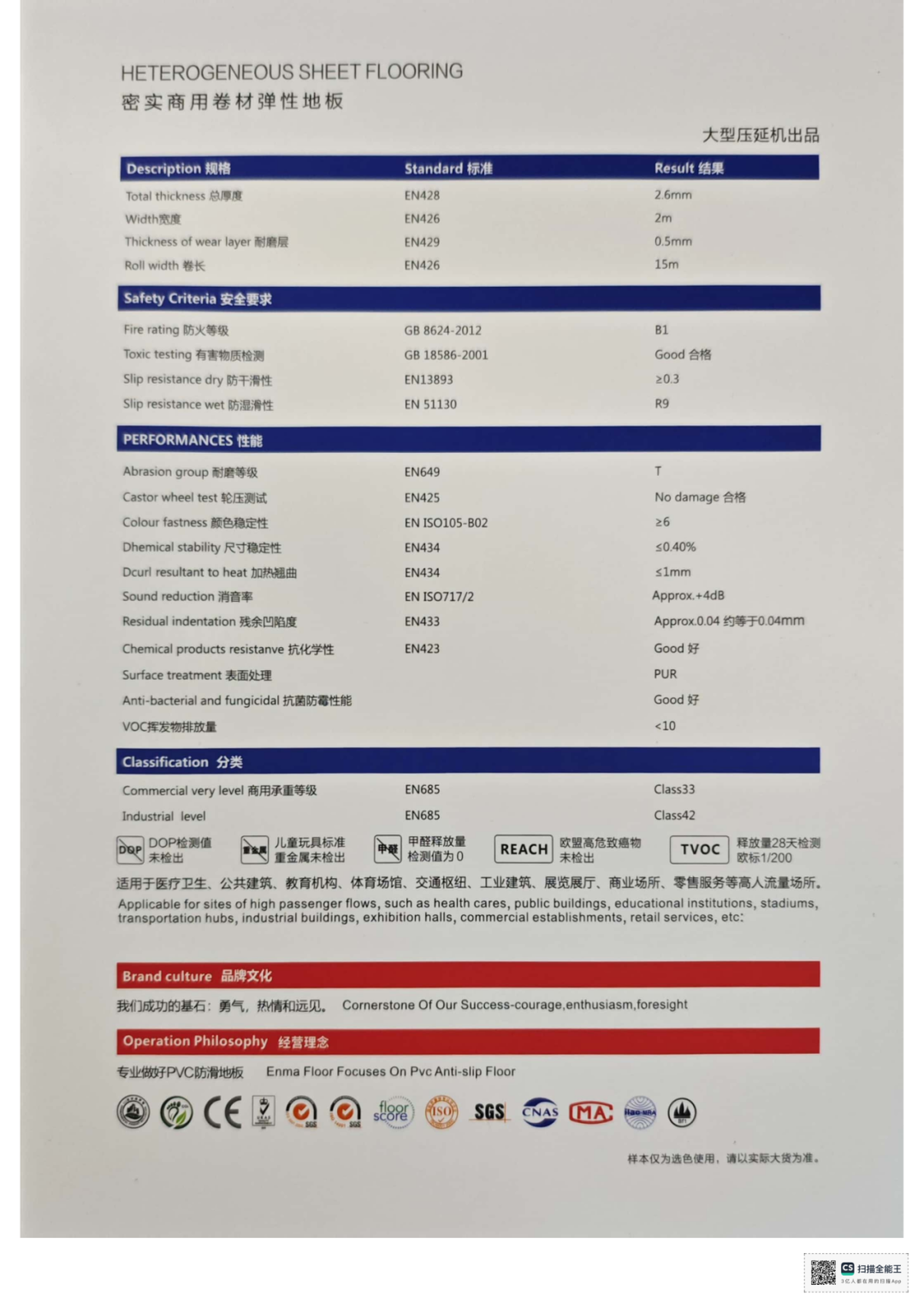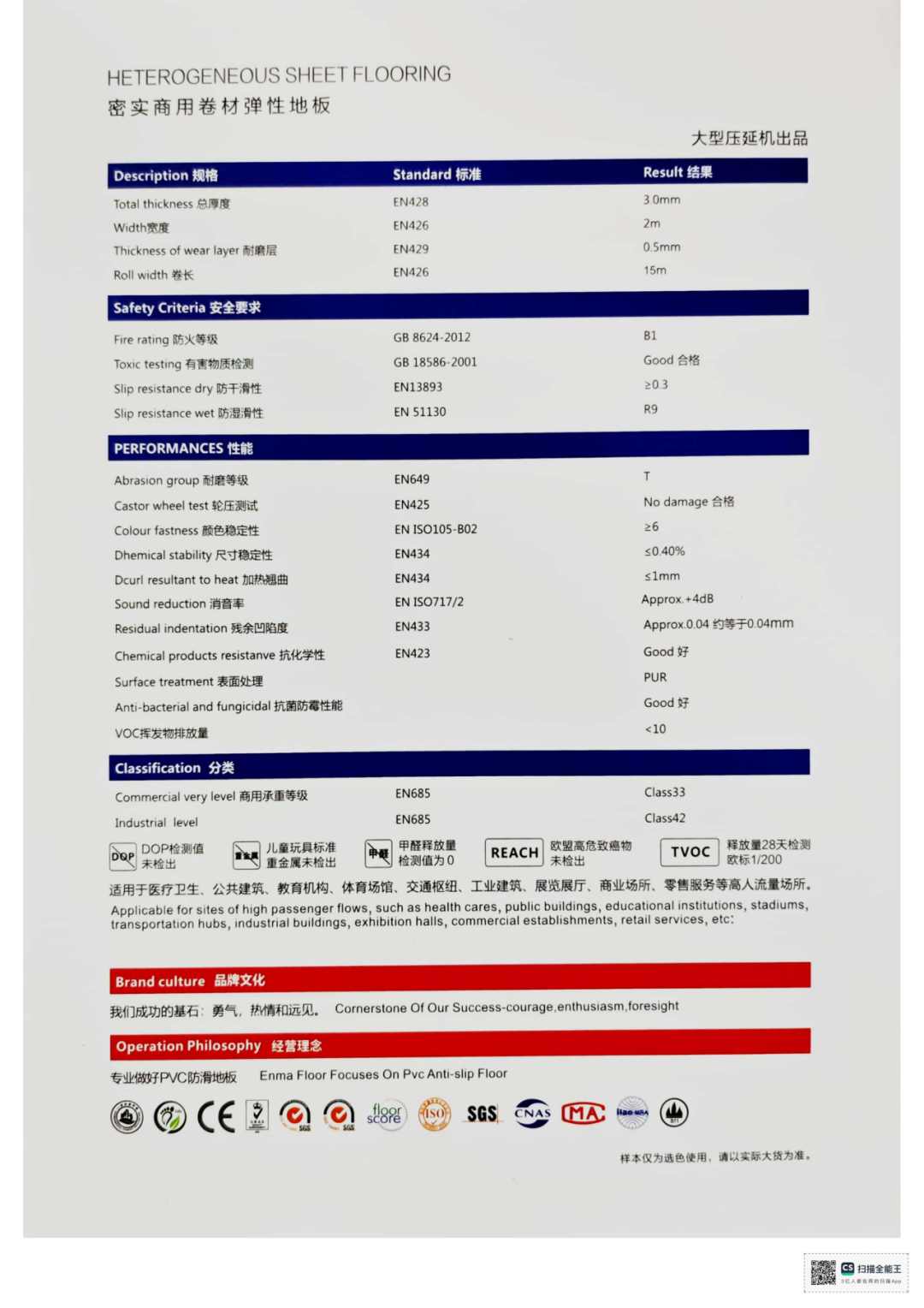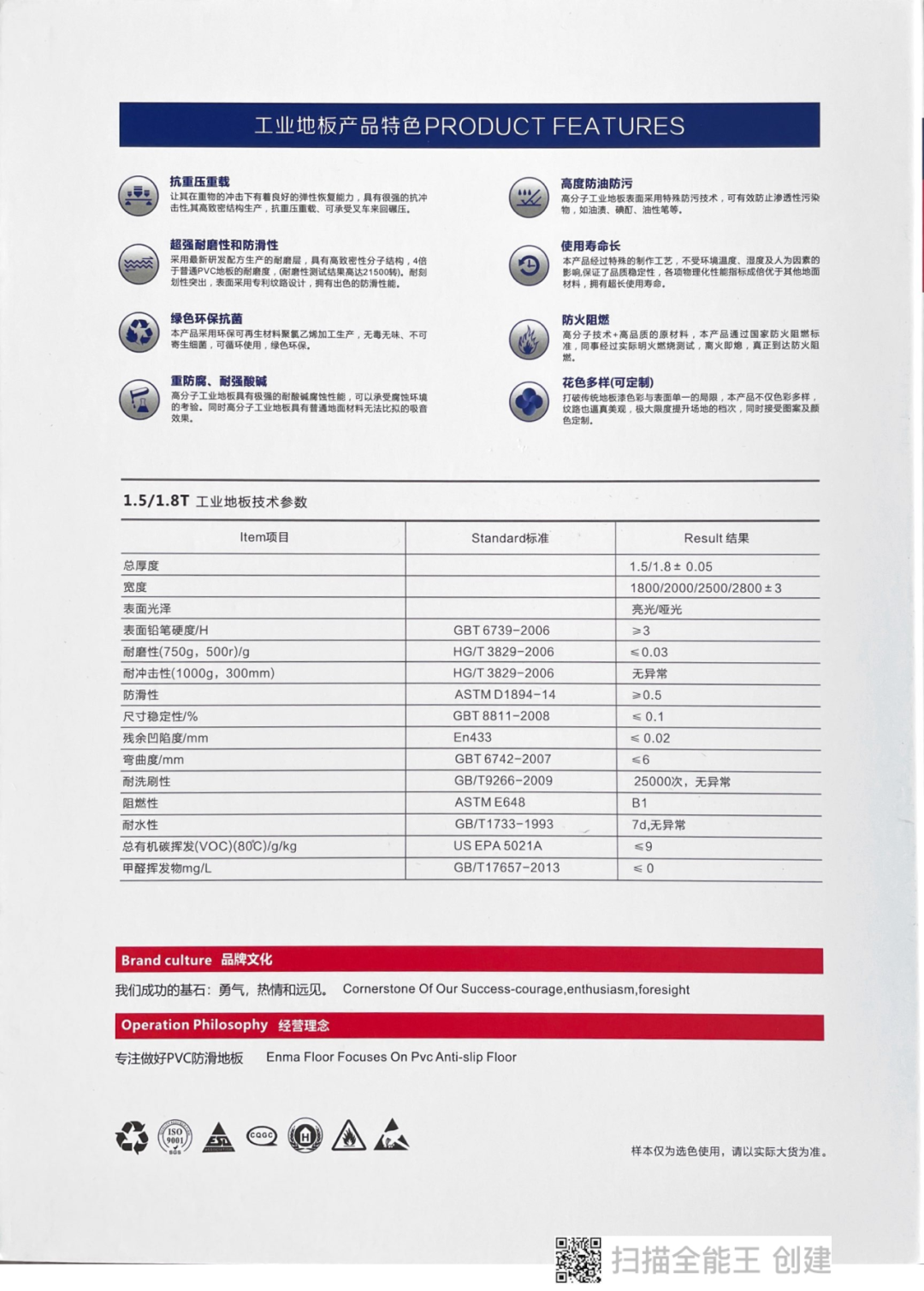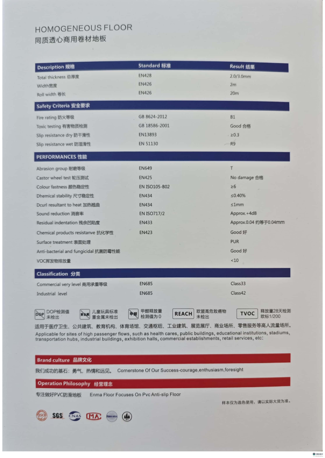 恩玛经营理念:专业做好PVC防滑地板和A级防火抗菌墙板。
