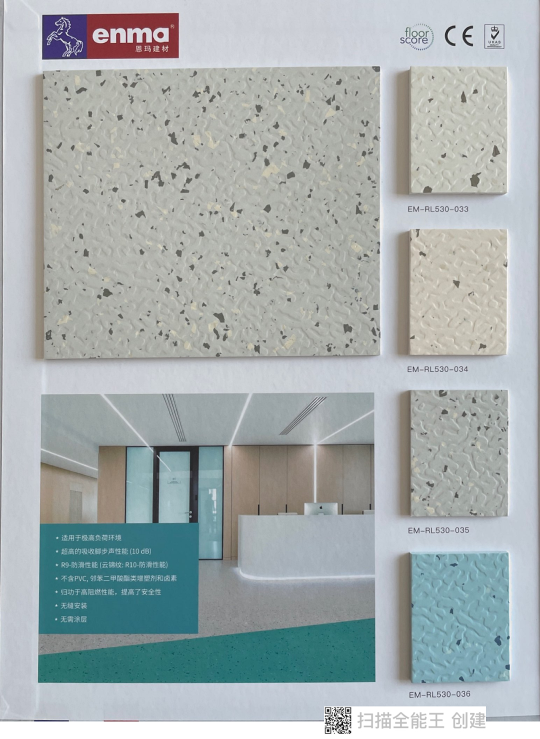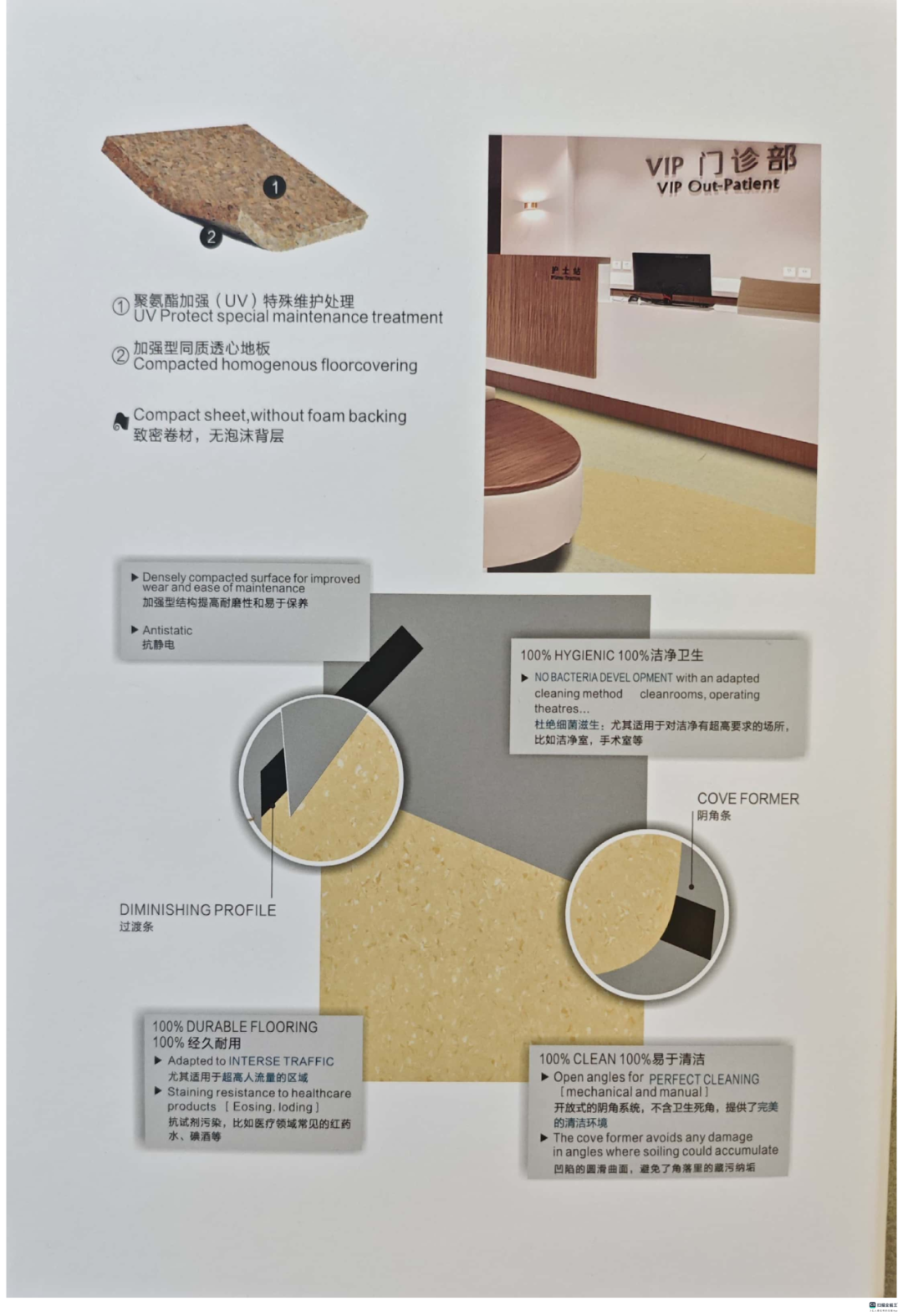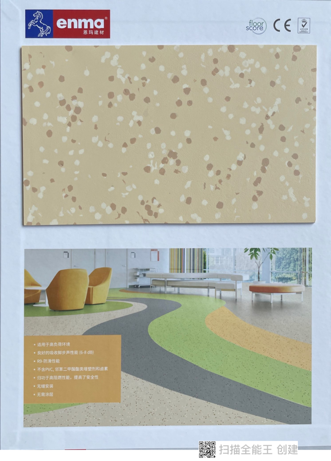 天然绿色环保,超级耐磨,超强防滑,色彩丰富、稳定性佳等,适用于医疗卫生、公共建筑、教育机构、幼教系统、体育场馆、交通枢纽、工业建筑、展览展厅、商业场所、办公场所、工厂车间、零售服务等高人流量场所。