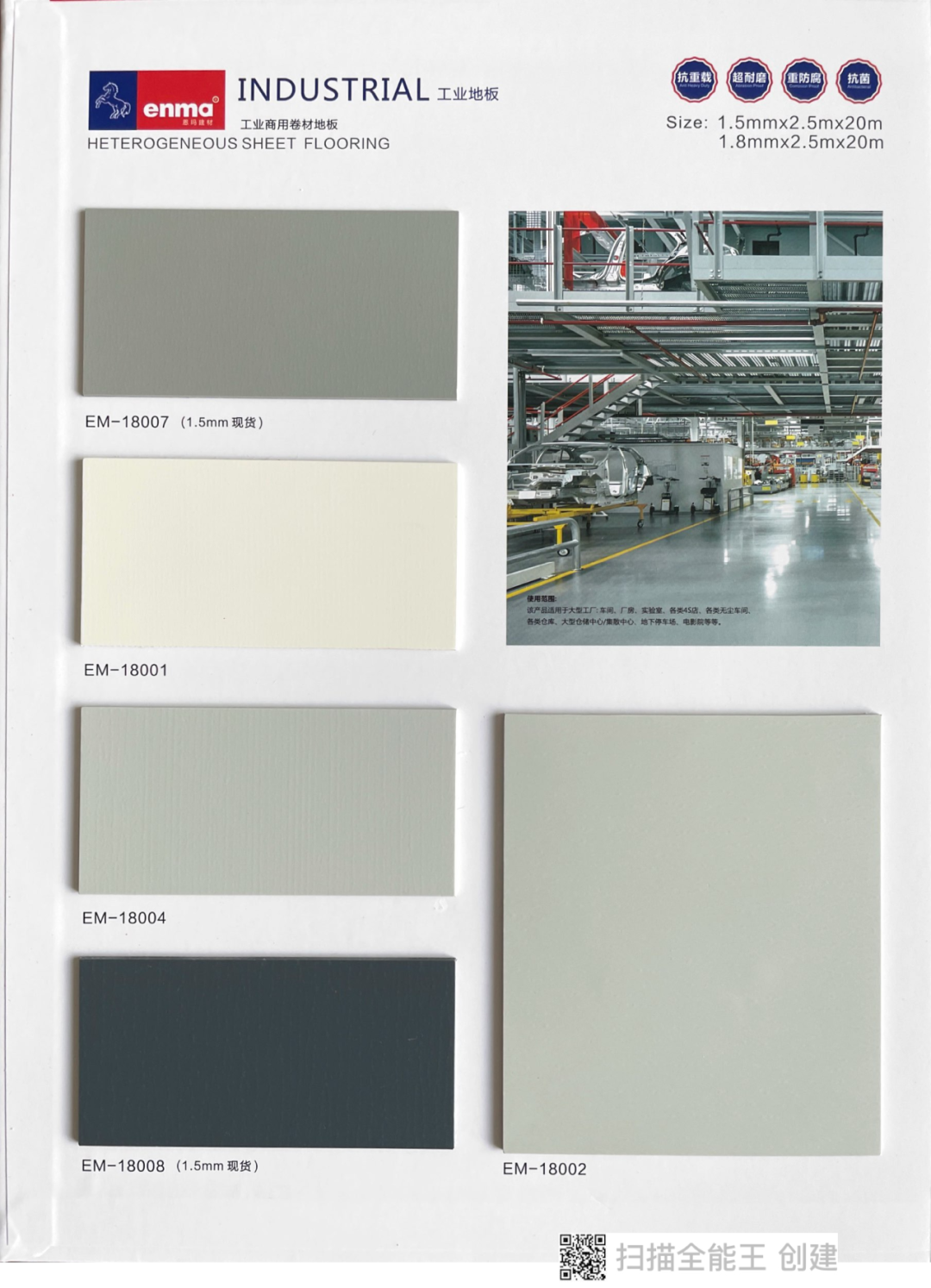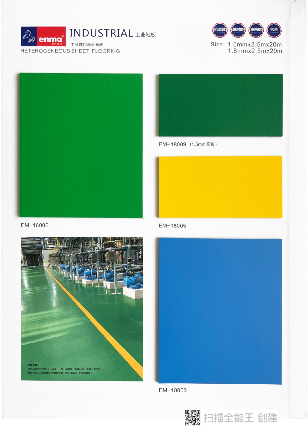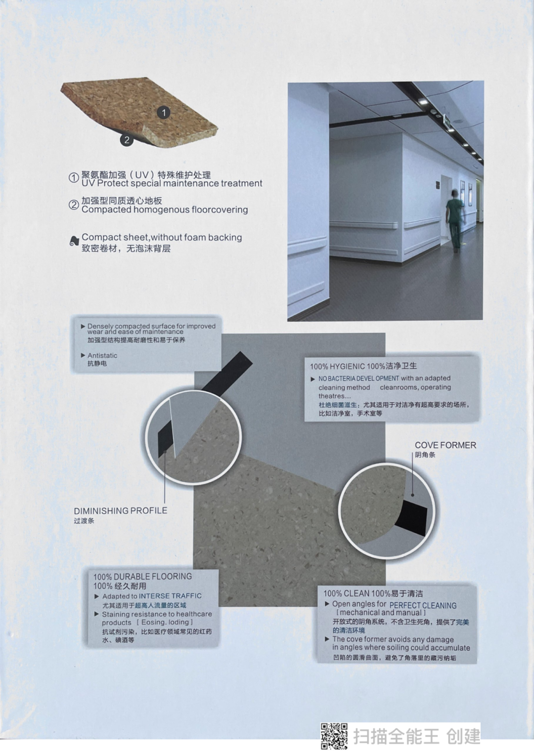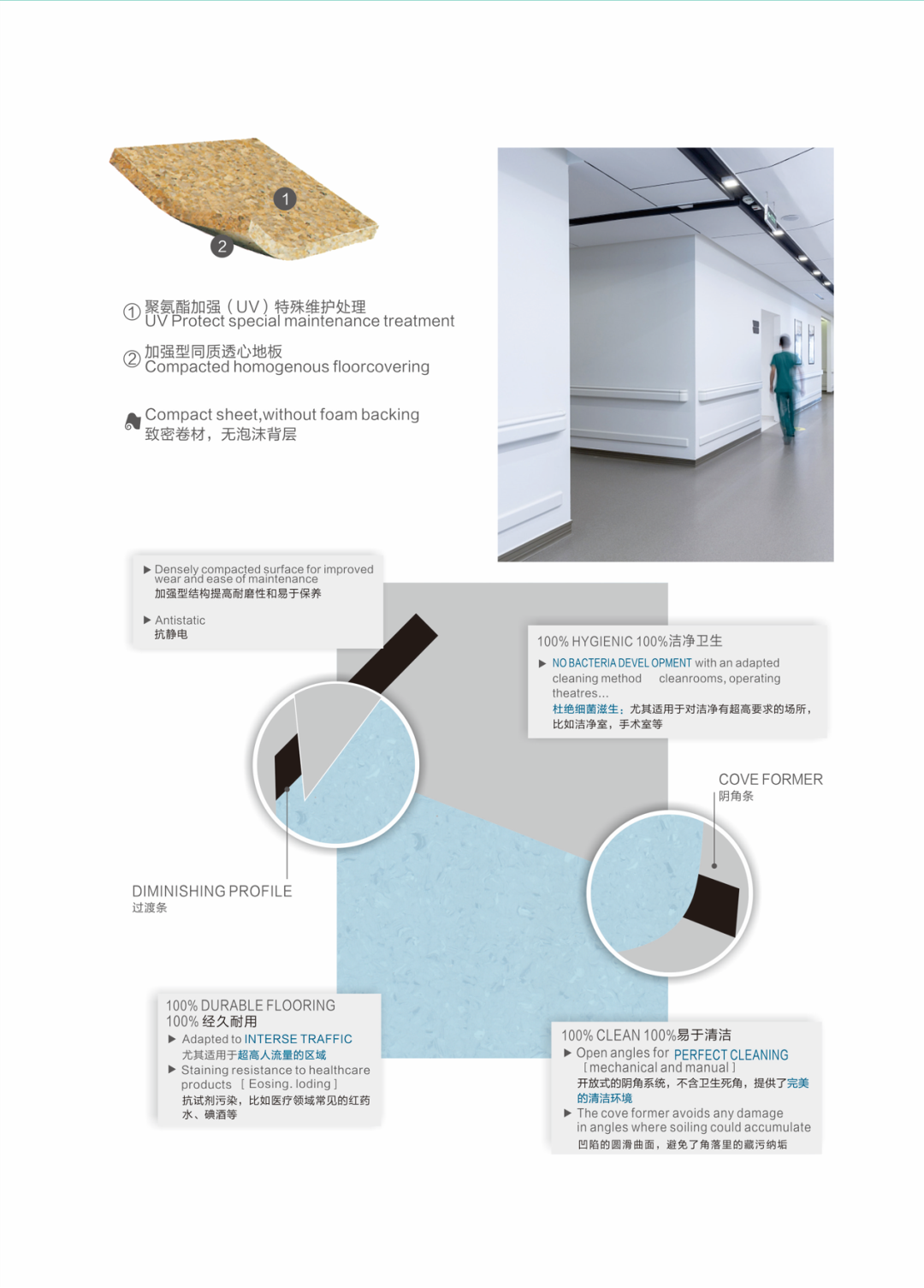 天然绿色环保,超级耐磨,超强防滑,色彩丰富、稳定性佳等,适用于医疗卫生、公共建筑、教育机构、幼教系统、体育场馆、交通枢纽、工业建筑、展览展厅、商业场所、办公场所、工厂车间、零售服务等高人流量场所。