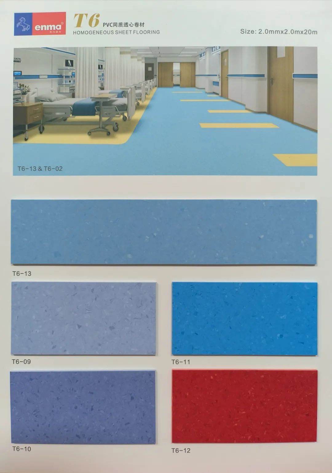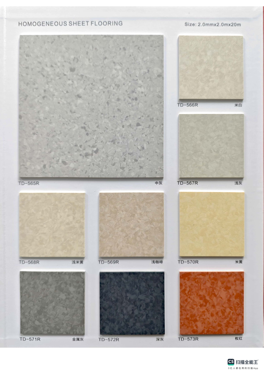 PVC同质透心地板的主要材料都是采用PVC树脂、天然石粉、助剂融合而成。同质透心卷材的原材料、加工工艺要求等都比较高,生产用PVC皆为原料,不含再生PVC,增塑剂较少。也称为"轻体地材",具有绿色环保、超轻超薄、超强耐磨、超强抗冲击、超强防滑、防火阻燃、防水防潮、抗菌性强等特点,使用非常广泛,比如医院、养老院、学校、培训机构、办公楼、工厂、公共场所、超市、商业等各种场所。
