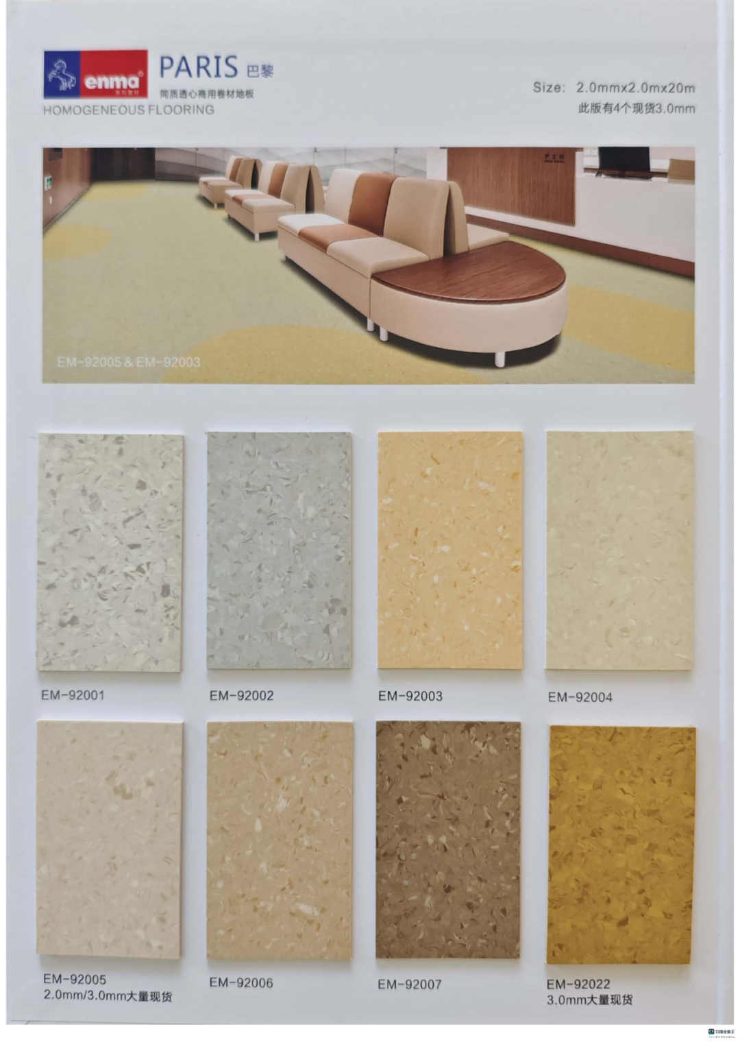 恩玛(enma®)品牌始建于2021年,由卡曼国际与法国恩玛联合投资创立,生产基地位于广东省佛山市高明区和浙江嘉善,专业生产PVC商用地板、同质透心地板和LVT片材地板,是生产规模大、品种规格齐全、信誉良好的塑胶地板生产企业。公司引进许多国内外先进的生产设备,实行国际先进的生产管理模式,打造科技含量高、生产标准严、质量稳定的产品供应链。