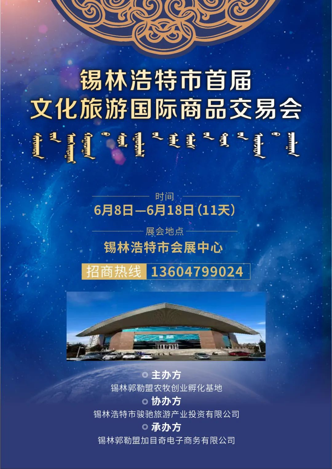 为大力扶持地域性、代表性旅游品牌的高质量发展,提升锡林浩特市非物质文化旅游品牌的知名度和影响力,由锡林浩特市骏驰旅游产业投资有限公司协办的锡林浩特市首届文化旅游国际商品交易会将于6月8日在锡林浩特市会展中心开幕。