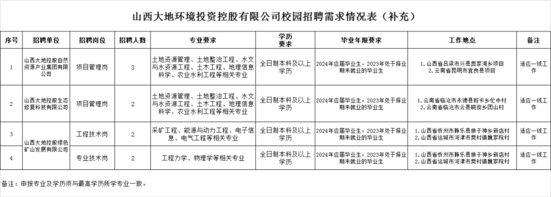 附件:山西大地环境投资控股有限公司校园招聘需求情况表(补充).xlsx.xlsx
