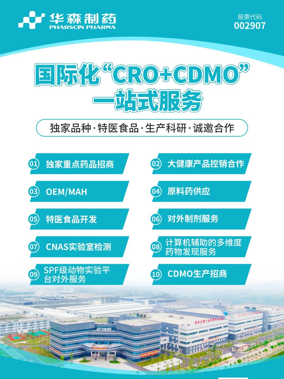 华森制药受邀参加此次会议,展位号:72E06,位于7.2馆,将展示公司在独家重点药品招商、大健康产品控销合作、OEM/MAH、原料药供应、特医食品开发、对外制剂服务、CNAS实验室检测、计算机辅助的多维度药物发现服务、SPF级动物实验平台对外服务、CDMO生产服务等方面的招商,期待大家莅临展台沟通探讨,共探生物医药产业新机遇。