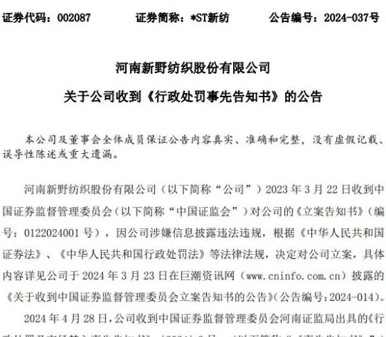 各位读者,近期有一则令人震惊的消息不断引起广泛关注——某公司最近收到了中国证监会发出的《行政处罚事先告知书》,指控其涉嫌在财务报告中存在多项造假行为。这一消息一经曝光,便在市场上掀起了巨大的波澜。如果这些指控被证实,该公司可能会面临着重大违法强制退市的风险,这对公司及其股东将产生极其严重的影响。同时,相关责任人也将面临证券市场禁入的处罚。