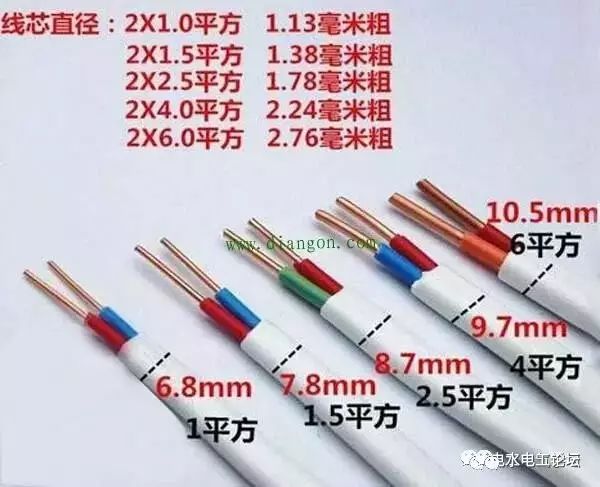 3、对于没有标注的电线,经验丰富的电工可以通过目测,看出电线的平方数。