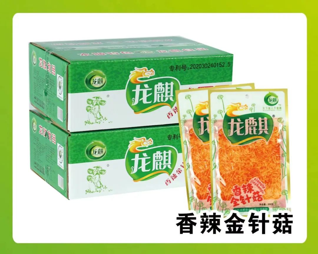 龙麒食品品牌创于1996年,以生产、加工食用菌为主。多年来我公司一直坚持"以质量求生存、以信誉求发展"的企业理念,研发生产的香辣金针菇、麻辣金针菇、红油金针菇等系列瓶装、袋装产品,在生产过程中以科学管理的方式,采用先进生产设备和精致的配方,生产出高品质的产品,已远销山东、东北三省、甘肃、新疆等省市地区,并出口至中亚国家,得到了国内外消费者的一致好评。