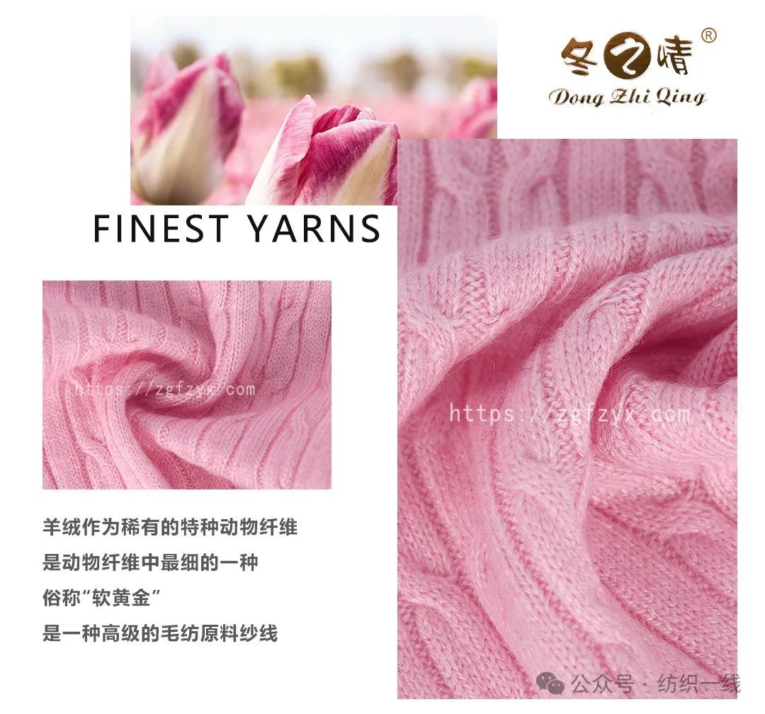 山羊绒具有轻、软、柔、暖等特点,故被日本誉为“纤维宝石”、英国称之为“纤维之冠”、美国称之为“白色云彩”。采用先进生产工艺,为广大高档纱线经销商及成衣制造商提供抗起效果超强的优质山羊绒纱线。
