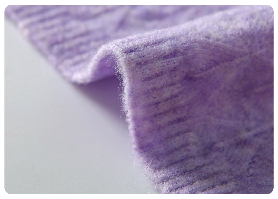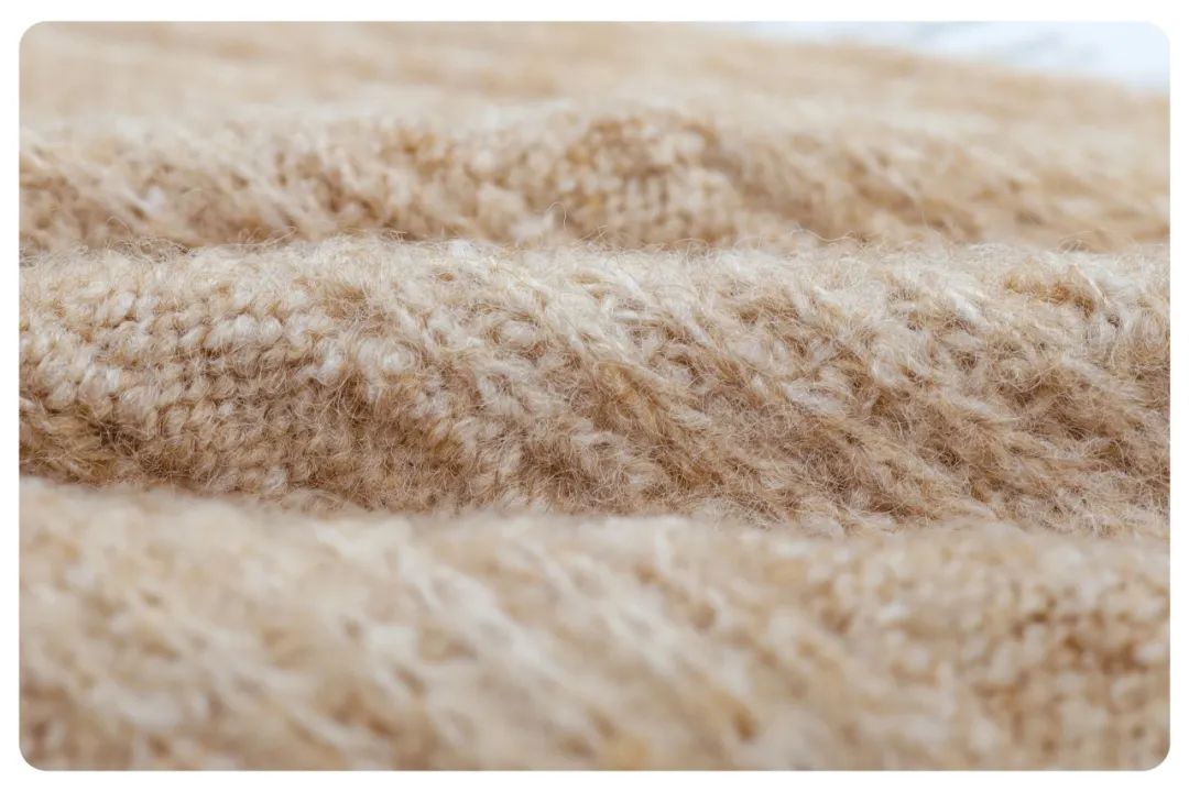 特性:面料具有较强的毛型感,纤维吸湿能力增强,具有良好的保暖性。手感蓬松柔软、与皮肤接触具有温暖感。