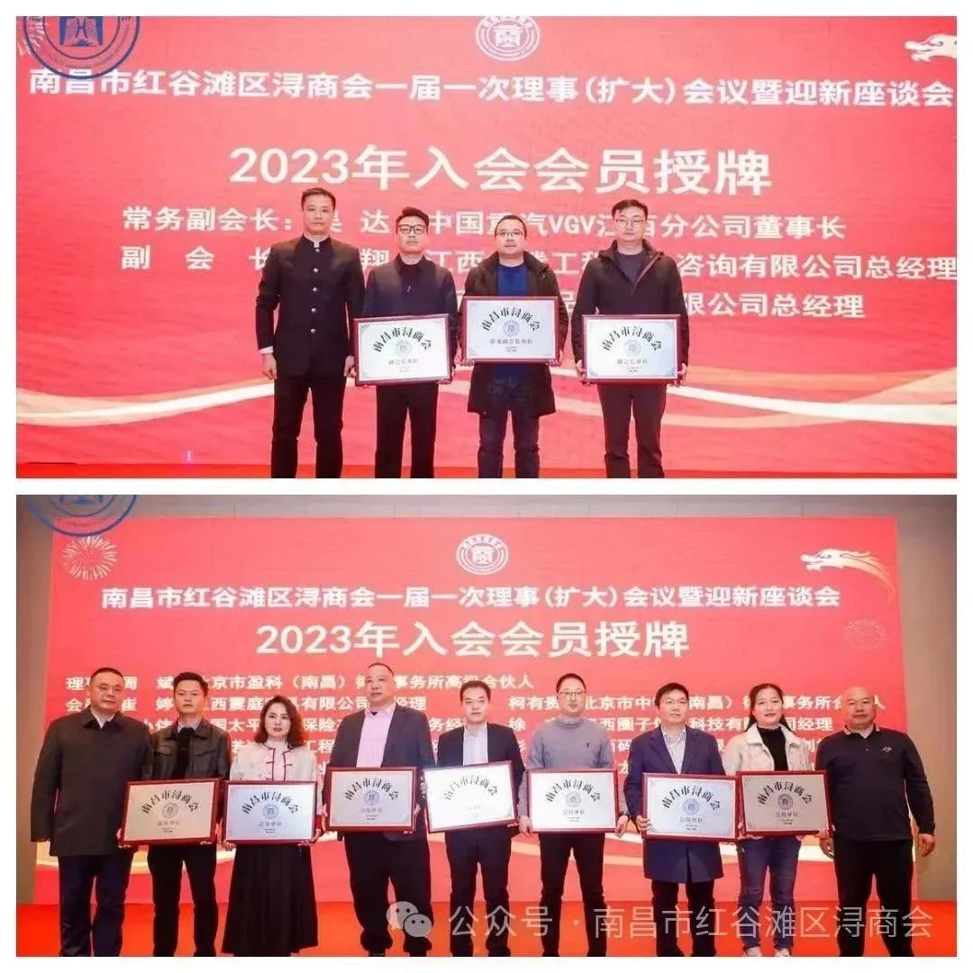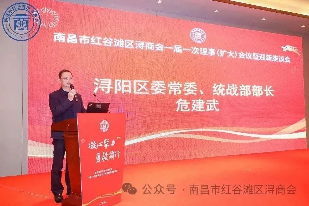 2024年1月5日,南昌市红谷滩区浔商会一届一次理事(扩大)会议暨迎新座谈会在昌隆重召开。浔阳区委常委、统战部部长危建武,浔阳区区委统战部常务副部长、王黎君,区委统战部副部长、工商联党组书记刘继一行到会指导。
