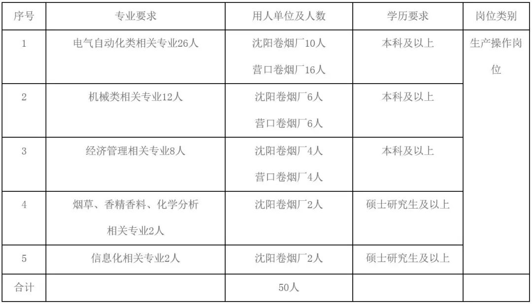 (2)要求硕士研究生及以上学历的专业:烟草、香精香料、化学分析相关专业;信息化相关专业。