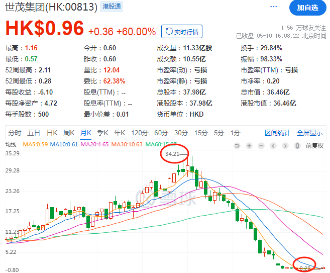 看似涨了好几倍,但是你要知道世贸集团的巅峰股价可是在30元港币以上,最多时候跌幅超过99%。