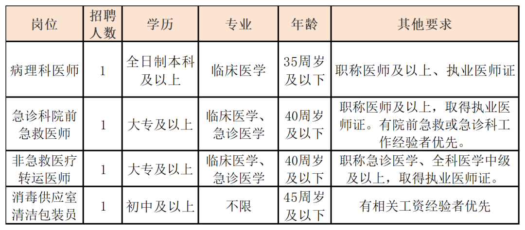1、其他要求:面向社会招收的住院医师如为普通高校应届毕业生的,其住培合格当年在医疗卫生机构就业,按当年应届毕业生同等对待。经住培合格的本科学历临床医师,与临床医学、口腔医学、中医专业学位硕士研究生同等对待(住培合格证书上的培训专业原则上应当与选聘岗位的专业或类别要求相一致),以上人员需在规定时间内取得住培结业考试合格证书。