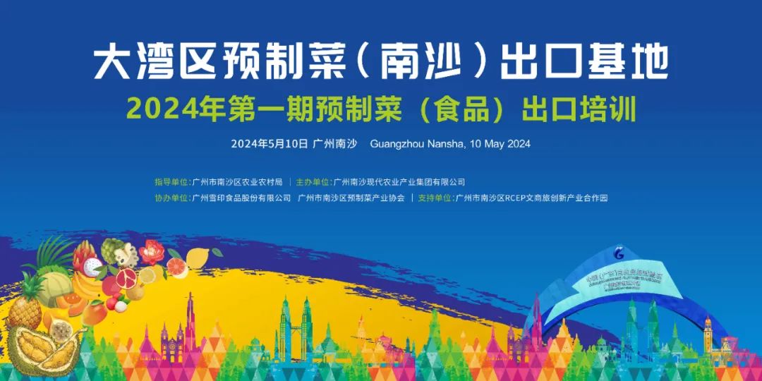 为促进大湾区预制菜出口,帮助企业了解预制菜外贸政策和流程, 2024年5月10日由广州雪印食品股份有限公司承办的“澜湄水果•预制菜产品进出口贸易推介暨大湾区预制菜(南沙)出口基地第一期培训会活动”在广州南沙水鸟世界举办。