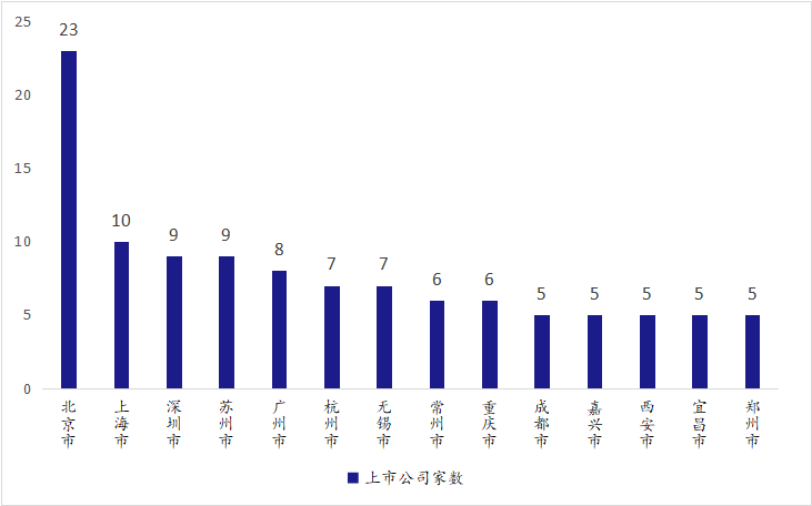 图:北交所上市公司地域分布(≥5家上市公司的城市)