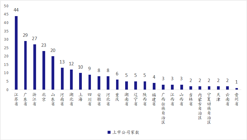 图:北交所上市公司地域分布(省/自治区/直辖市)