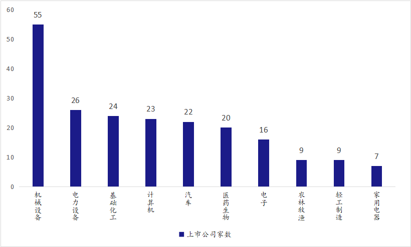 图:北交所上市公司行业分布(按申万一级行业划分)