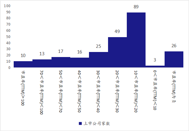 10<市盈率(TTM)<20 89家(占总数比例35.9%)