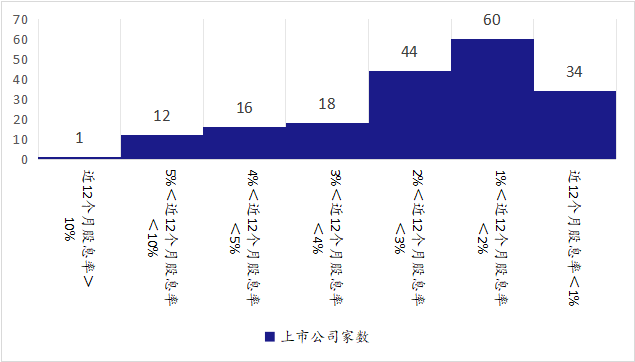 近12个月股息率算术平均值(仅包括数据可查部分)为2.36%