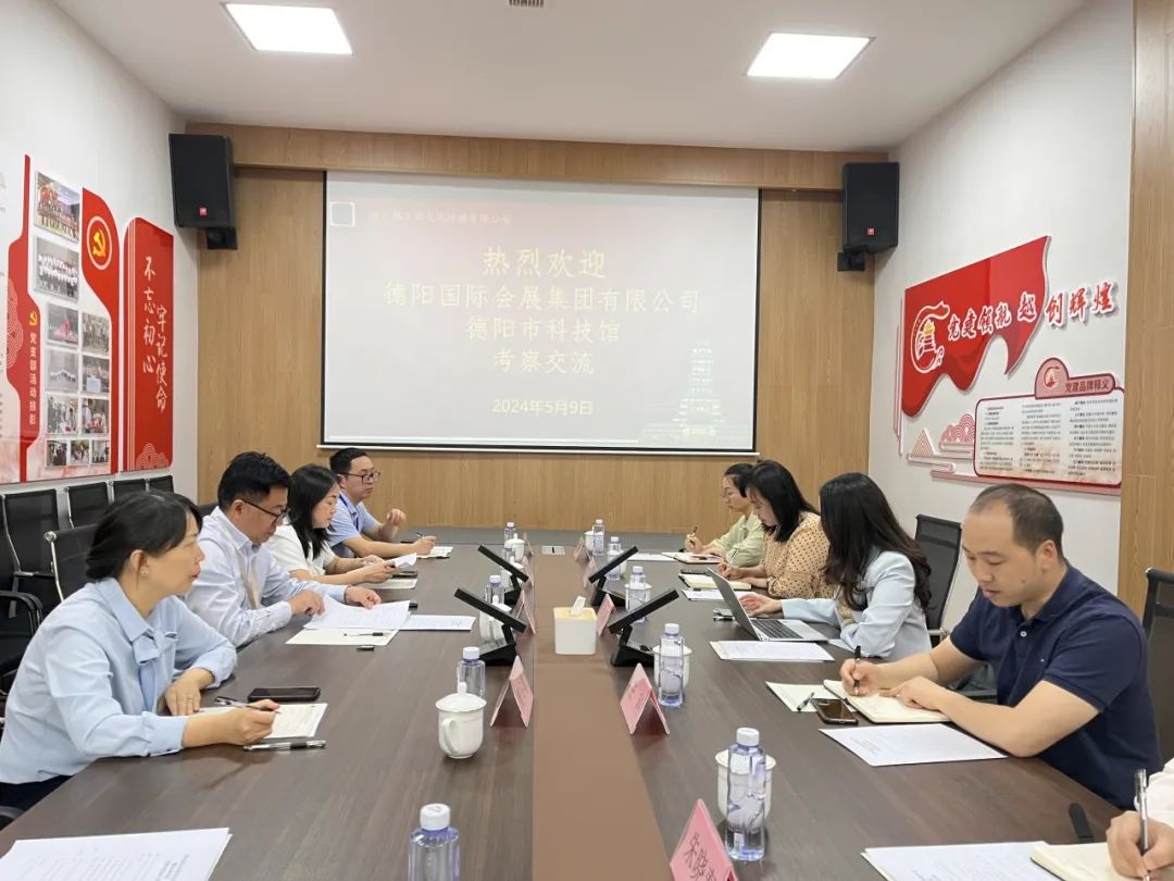 5月9日,德阳市科技馆馆长、市青教协理事长庄科,德阳会展集团党委书记、董事长蒋春霞一行来到绵阳科技馆考察交流,双方重点围绕运营管理、科普活动开展方面进行了深入探讨交流。绵阳文旅集团董事长景茂斌,越王楼公司董事长张芝海、副总经理罗梦陪同考察。