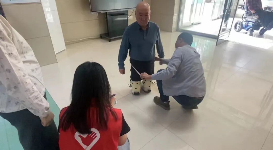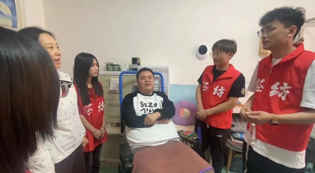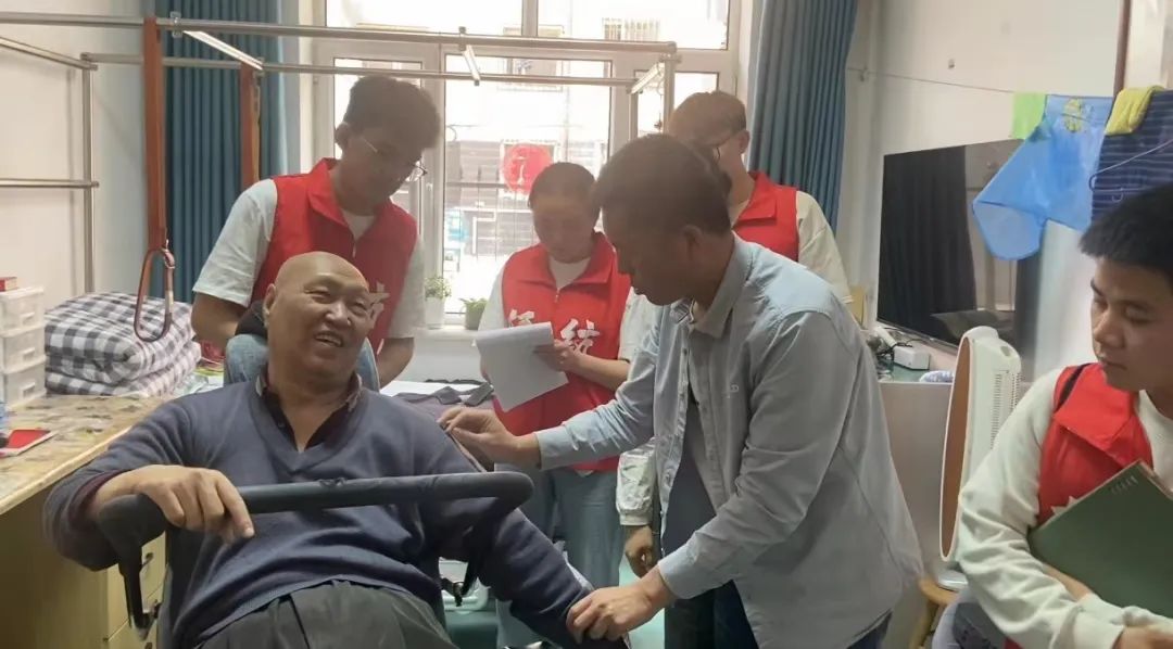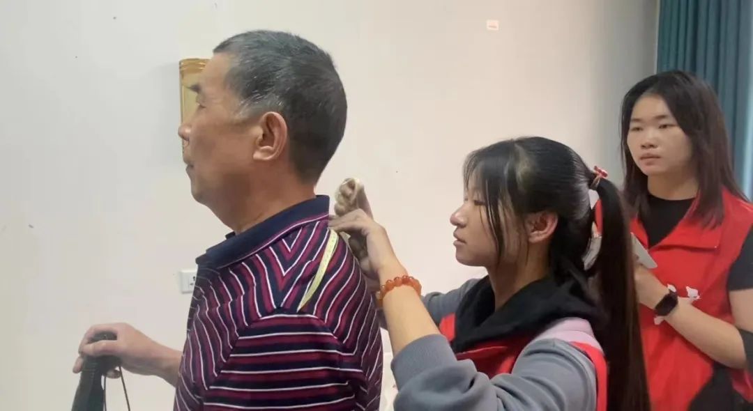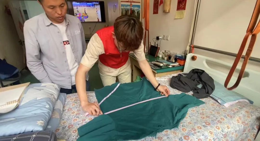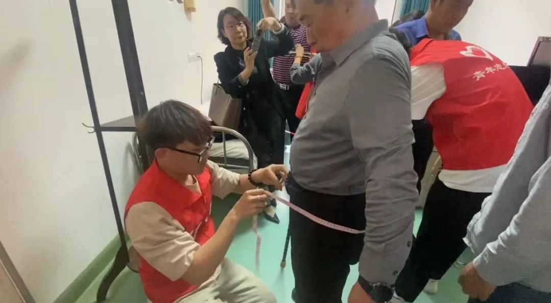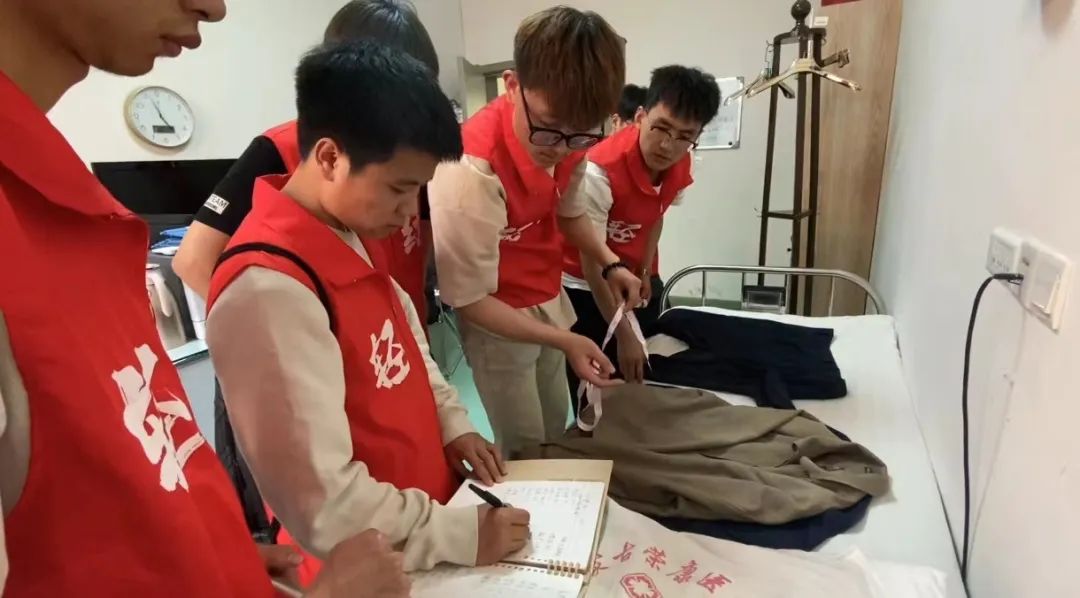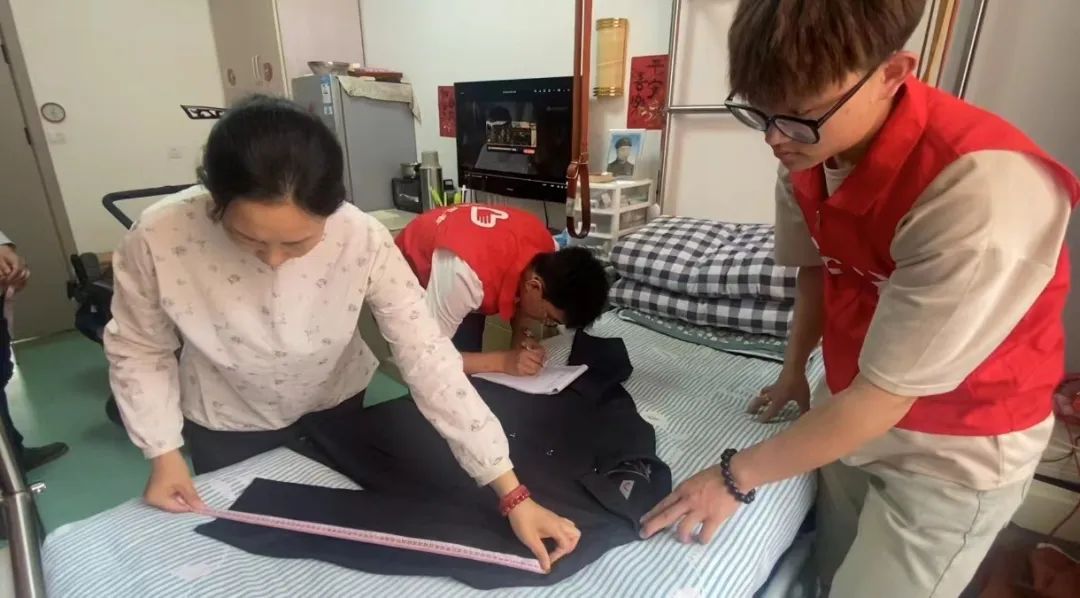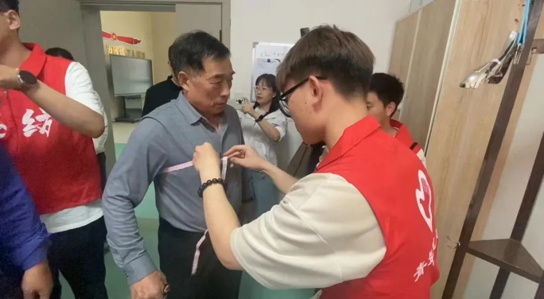 活动中,教师代表和团员青年对荣誉军人进行探访和慰问,向荣誉军人表达尊重和敬意,结合专业优势,团员青年们在专任教师的带领下,主动了解荣誉军人的穿衣需求,为荣誉军人量体,后续为每一位荣誉军人定制一件服装。