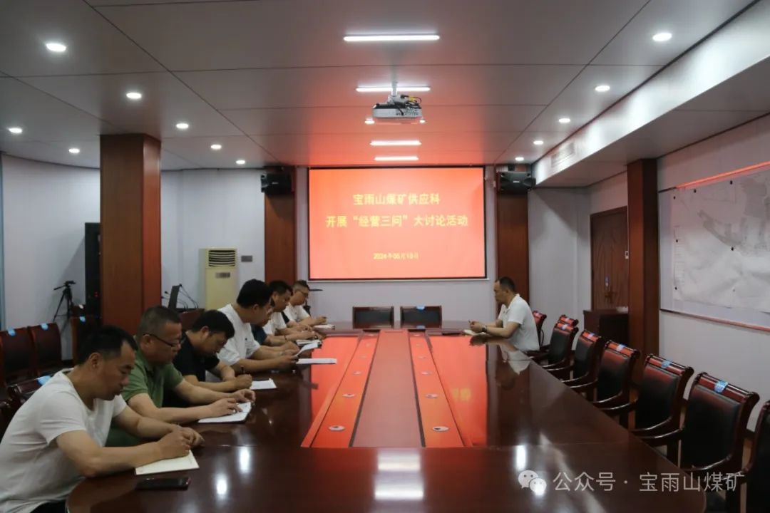 5月10日,宝雨山煤矿物资供应科在该矿三楼会议室召开“经营三问”大讨论活动,该矿副矿长刘洋、物资供应科人员参加。