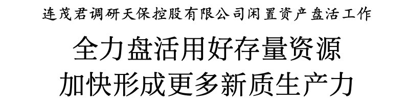 在随后召开的座谈会上,连茂君对天保控股有限公司闲置资产盘活等工作取得的进展给予肯定,强调要深入贯彻落实习近平总书记视察天津重要讲话精神,坚决落实市委市政府、区委区政府决策部署,敢于担当、善于突破、攻坚克难,以实干实绩为新区高质量发展作出更大贡献。要进一步坚定信心决心,直面困难问题,敢于啃“硬骨头”,创新盘活存量的方式方法,坚持盘活无形资产与盘活有形资产统筹谋划、联动推进,扎实有效防范化解风险,确保按期保质完成各项目标任务,做到因盘而活、盘而有效。要深化国有企业改革,坚持市场化方向,加快推动国有企业转型发展,健全市场化经营机制,全面增强国有企业市场竞争力。坚持产业化方向,聚焦主导产业,用好保税区独特优势,着力抓实产业布局优化,大力发展保税加工、保税研发、保税展示交易等特色产业,加快形成更多新质生产力,打造国有经济新的增长点。坚持现代化方向,完善中国特色现代企业制度,深化劳动、人事、分配“三项制度”改革,强化扁平化管理,加快推进同质化企业整合重组,不断增强国有企业发展动力活力。要加强与保税区的有机协同,强化招商联动,做到资源共享,实现互利共赢、共同发展。