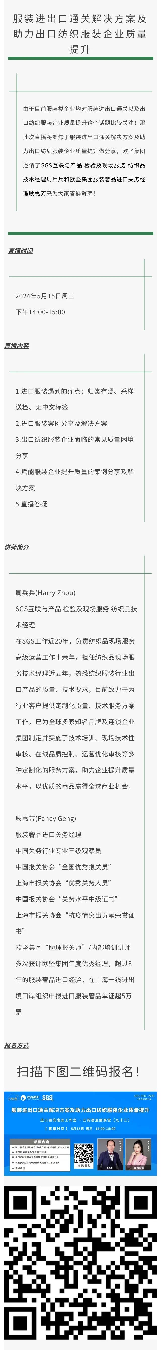 直播邀约|服装进出口通关解决方案及助力出口纺织服装企业质量提升