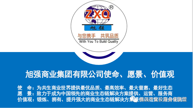 旭强商业集团有限公司(简称“旭强商业集团”),成立于2012年,是一家以商业生态链自成体系和多功能配套发展的产业集群型生态企业;又是一家创造性整合商业生态链赋能产业进化变革和推进中国商业文明现代化转型的创新驱动型综合企业。 始终秉袭和围绕以“与您携手,共筑品质”的品牌基因发展,在产业品牌、企业品牌、产品品牌、文化品牌、管理品牌、运营品牌、服务品牌体系建设上,聚焦“品质”的价值,以“为客户创造价值,与客户共同成长”为核心,搭建集思想、创造、实践为一体和融政策、项目、资本为一炉的产业生态链系统集成赋能型商业模式。 始终秉持和围绕产业生态链,以城市建设与乡村振兴为纲,以产业导入为则,以商业服务为重,着力于打造战略协同和资源有效匹配的综合体,着力于塑造人、商业、服务、思想的集合体,着力于缔造产业生态链赋能商业经济体。 始终秉亟和围绕以“推动中国商业生态培根铸魂,引领中国商业文明现代化转型”的理念和以“共担、共创、共进、共建、共享、共商、共赢、共融、共生、共富、共荣”的原则构建商业生态经济体,不断融合产业效能和跨界整合资源创造商业价值,实现量变、质变、裂变的突破。 始终秉承和围绕以“项目”带动企业整合创新、积极引导、联合促成各方全方位、多层次、无边界合作,专注于提供4.0传播体系(品牌管理、年度全案、整合营销、数字营销、事件营销、娱乐营销、危机公关、财经公关、市场调研、大型活动策划)和推动中国城市建设和乡村振兴发展体系(思想库、加油站、助推器)的创造性整合商业生态链解决方案提供、运营、服务商。 我司创建以解决方案为导向的事业模式,为解决行业与地区可持续发展所面临的各种问题做出贡献。我司构建以核心企业为主导、以出资方为主导、以平台为主导的商业生态链解决方案创新模式,促使商业生态链各成员企业、各环节、各节点无缝隙对接和精准化交易的实现。 我司搭建“1+N”商业生态体系,推动中国商业生态培根铸魂,引领中国商业文明现代化转型。 我司组建“To G”模式的医疗、农业、旅游、科技、基础设施建设、金融六大产业集群和“To B”模式的企业服务体系,助力地方经济发展。 我司以“核心企业”为起点,以“出资方”为切入点,以“平台”为基础,以“商业生态链”为核心,以“商业生态链解决方案提供、运营、服务”为载体,以“科技”为手段,以“客户需要”为导向,以“战略协同、资源匹配”为合作原则,以“提高运行质量和效率、降低运行成本”为目标,作为产业链的参与者、价值链的贡献者、生态链的引领者,将企业经营活动进行了前伸和后延,并加以控制和协调,通过企业间协作,谋求产业链整体最佳化、寻求价值链整体最大化、追求生态链整体最优化,实现商业生态链全过程高效协同的组织形态,构建一个“共担、共建、共进、共创、共享、共商、共赢、共融、共生、共富、共荣”的商业生态经济体。 旭强商业集团有限公司以商业生态链自成体系和多功能配套发展的自有四大平台: 《旭强产业投资合作联盟 》 (简称“ZXQIICU”):创办于2012年,由旭强(集团)有限公司发起,旭强控股有限公司主导,旭强商业集团有限公司主体运营服务的“纵向整合,横向链接”产业合作平台。始终秉持“与您携手,共筑品质”的价值理念,始终坚持“政产学研用金媒”的搭建原则,始终遵循“与产业共命运,同地方共发展”的主题;致力于成为中国领先的产业生态链解决方案提供、运营、服务商;在北京、上海、深圳设立了品牌产业运营服务中心。 《旭强论坛》:追溯于2004年,创办于2012年,由旭强(集团)有限公司发起,旭强电气(上海)有限公司主办,旭强投资咨询(南京)有限公司承办。2022年起由旭强商业集团有限公司主办,旭强公共关系(北京)有限公司承办;始终秉持“崇尚科学,信仰真理;热爱人类与地球,尊重社会与生命”的精神,始终坚持“共担、共创、共进、共建、共享、共商、共赢、共融、共生、共富、共荣”的原则,始终遵循“进步与成长、建设与发展”的主题;致力于搭建企业成长、国家建设、社会发展、人类进步力量的思想库、加油站、助推器。 《旭强思乡会》追溯于2004年旭强甘肃庆阳联谊会,创办于2012年,由旭控股有限公司主办,旭强公共关系(北京)有限公司承办。始终秉持“不忘家乡根,回报桑梓情”的精神;始终坚持“精诚团结,增进乡情,共图发展,回报家乡”的搭建宗旨;始终秉承“一场思乡会,一首思乡曲,一席思乡酒,一股思乡情”的搭建原则;始终遵循“听乡音、话桑梓、叙乡情,谋发展”的主题。致力于搭建中国领先的“共叙乡情友情,共谋家乡发展”的思想库、加油站、助推器;在北京、上海、深圳设立了运营服务中心。 《旭强书院》创办于2018年,源于旭强THU-PKU联谊会,由旭强商业集团有限公司发起,旭强控股有限公司主导,旭强咨询(北京)有限公司承建。始终秉持“追求真理,报效祖国”的精神;始终坚持“远离政治,亲近政府;育商海领袖,铸中华商魂”的宗旨;始终遵循“弘扬商业文化,启发商业理性;传播商业精神,重构商业文明”的主题。致力于成为中国领先的“推动中国商业生态培根铸魂,引领中国商业文明现代化转型”的思想库、加油站、助推器。在北京、上海、深圳设立了运营服