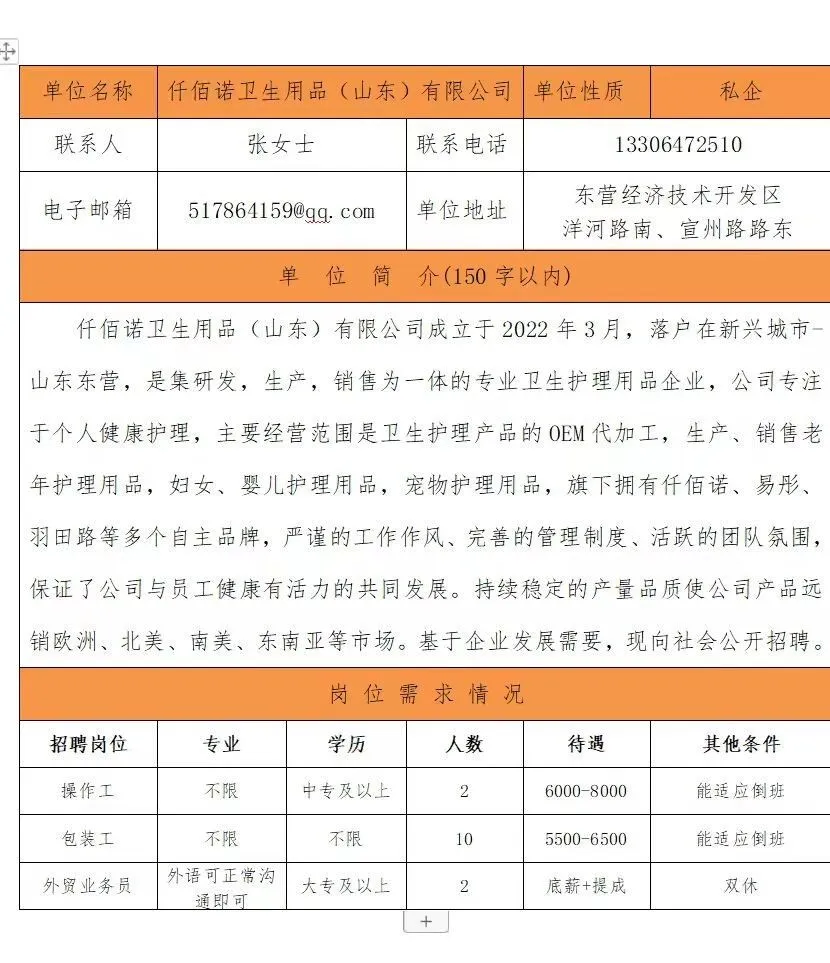 海力风电设备科技(东营)有限公司,为新能源风电企业,需普工50名,QC10人,设备管理2人,机修工5人,有志者同逐深蓝,上市企业,福利多多。张女士 18054623697