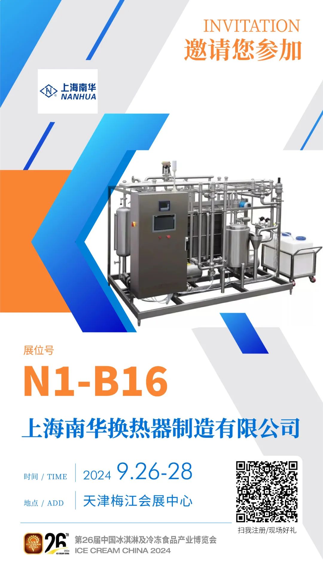 我们期待着上海南华在 2024 年 9 月 26-28 日的中国冰博会上大放异彩!欢迎各位读者莅临天津梅江会展中心,前往N1-B16展位参观,与上海南华共同探讨合作机会,共同见证行业的发展。