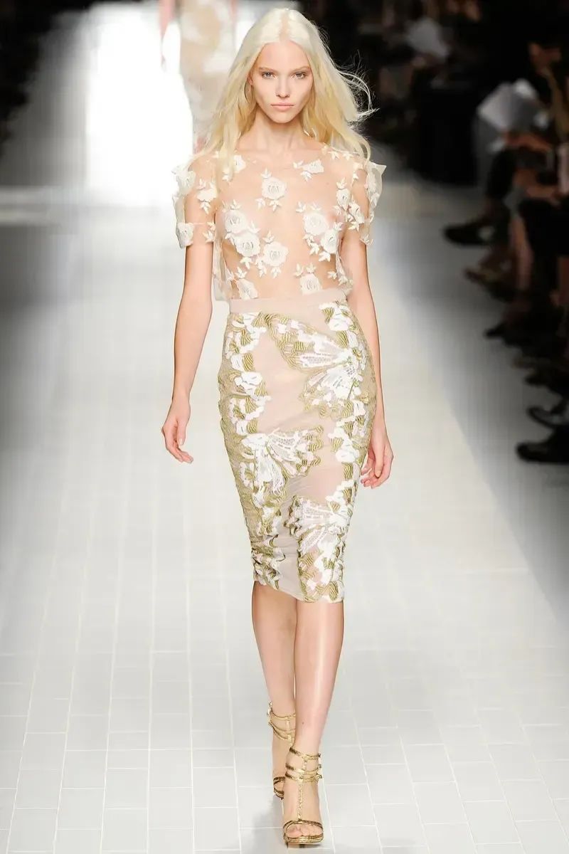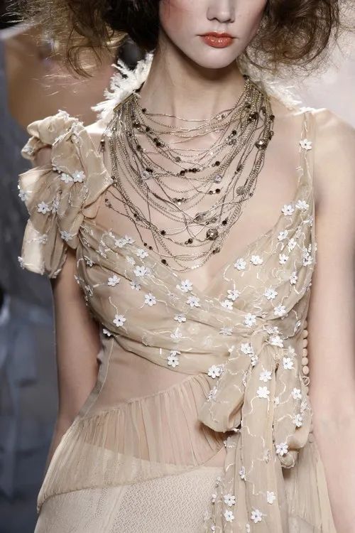 独特外观:蕾丝自带温柔浪漫感受,赋予优雅质感 半透明感:蕾丝的半透明效果赋予服装一种性感和优雅的视觉感受。 轻盈质地:蕾丝面料通常非常轻盈,赋予服装柔软