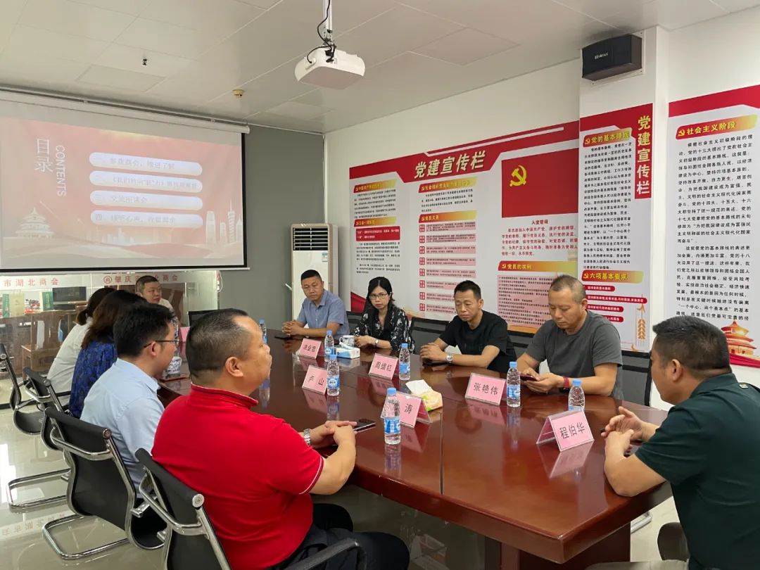 为深入学习习近平新时代中国特色社会主义思想,认真贯彻落实省、市高质量发展大计精神,进一步引导民营企业家坚守实体经济发展,不断提升产品和服务水平,推进民营企业积极投身高质量发展。5月10日下午,肇庆市湖北商会组织开展第五期会长接待日暨商会开放日活动,活动由会长程伯华主持,监事长李涛携本月轮值执行秘书长周绪红进行接待,肇庆市肇达电机有限公司总经理张艳伟,肇庆市佰米曼家具有限公司总经理冼业雪,肇庆市颐源贸易有限公司总经理张晓平,广东优品后勤管理服务有限公司肇庆分公司总经理卢山,端州区九通商行总经理邓伟,迎朋企业登记代理(上海)有限公司肇庆分公司财务总监杨美超以及乡贤代表等来访进行座谈交流。