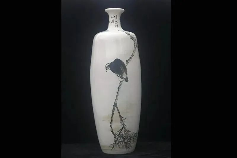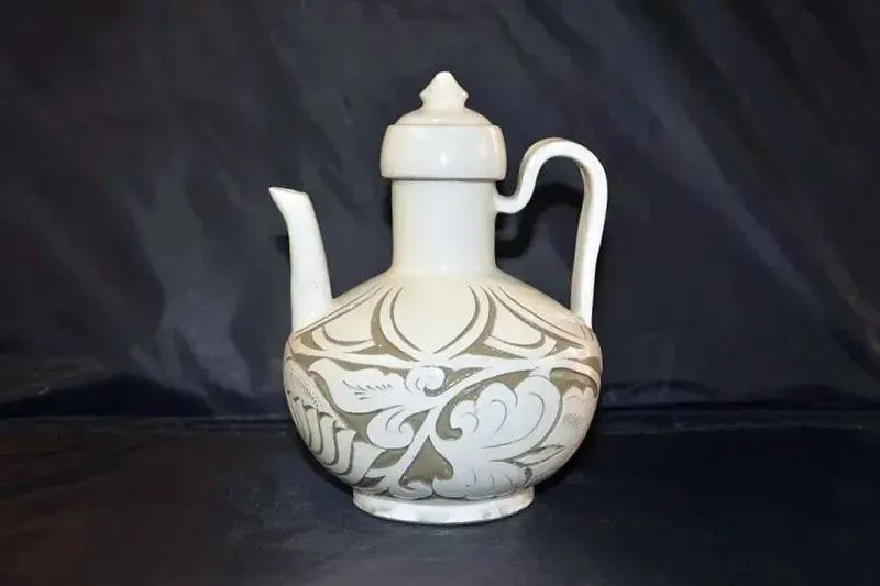 《白釉珍珠地画花钱币纹橄榄瓶》