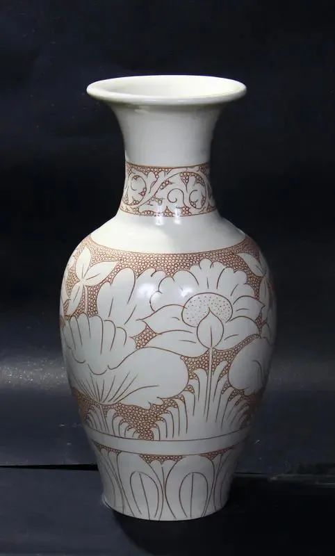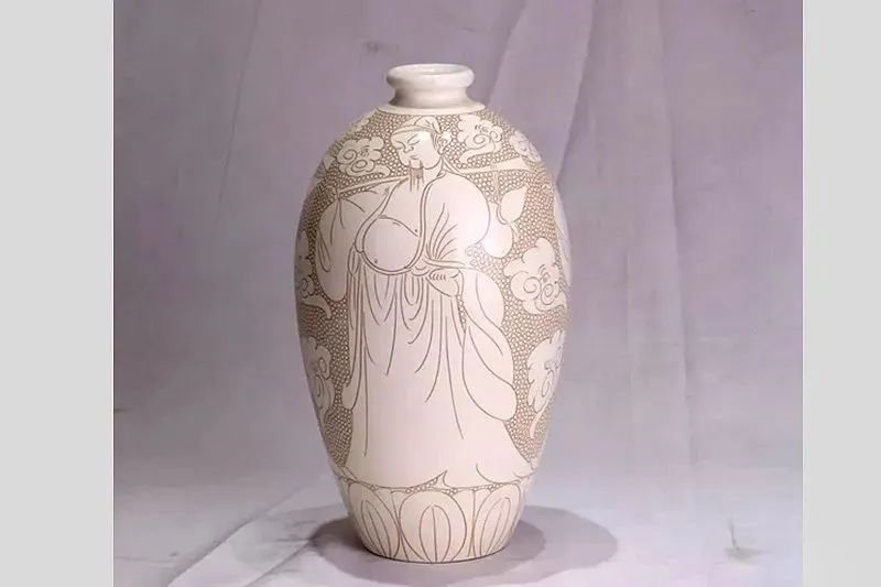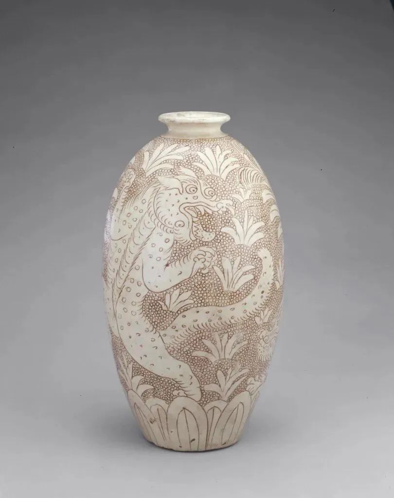 《仿宋登封窑白釉珍珠地划花双虎纹瓶》