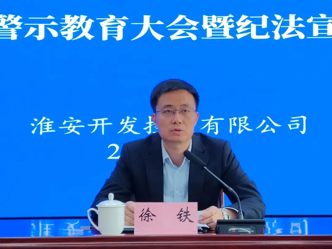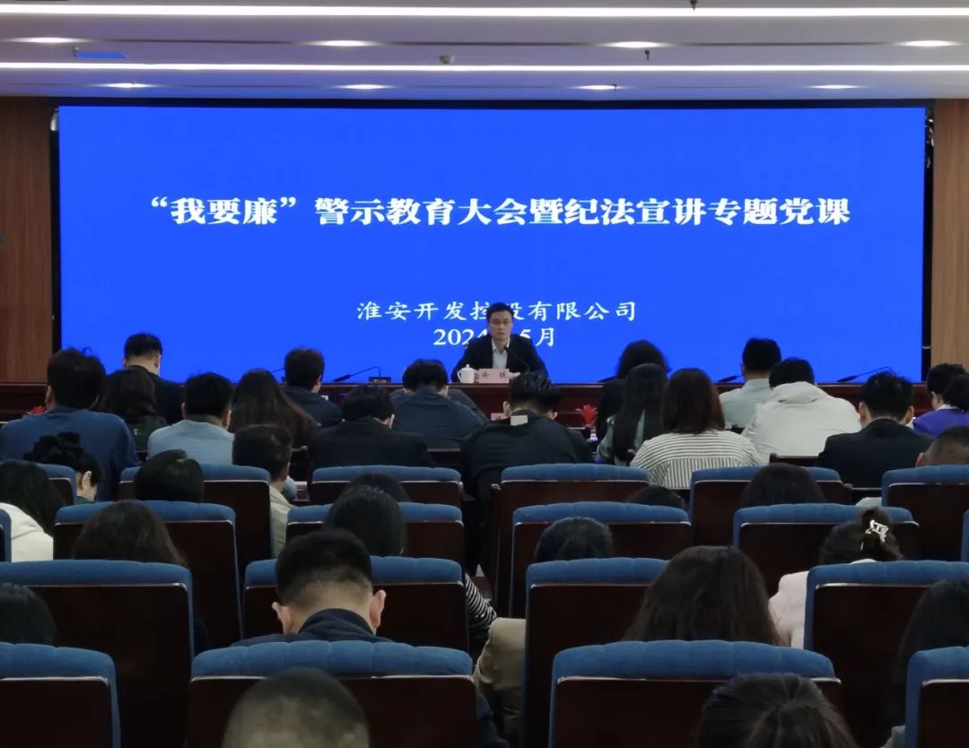 5月11日下午,淮安开发控股有限公司召开2024年度“我要廉”警示教育大会暨纪法宣讲专题党课。会上,观看了区纪工委拍摄的警示教育片《谁知盘中餐 竟藏风腐案》。公司党委书记、董事长徐铁传达了徐子佳书记在全区警示教育大会上的讲话精神并结合公司实际做纪法宣讲。