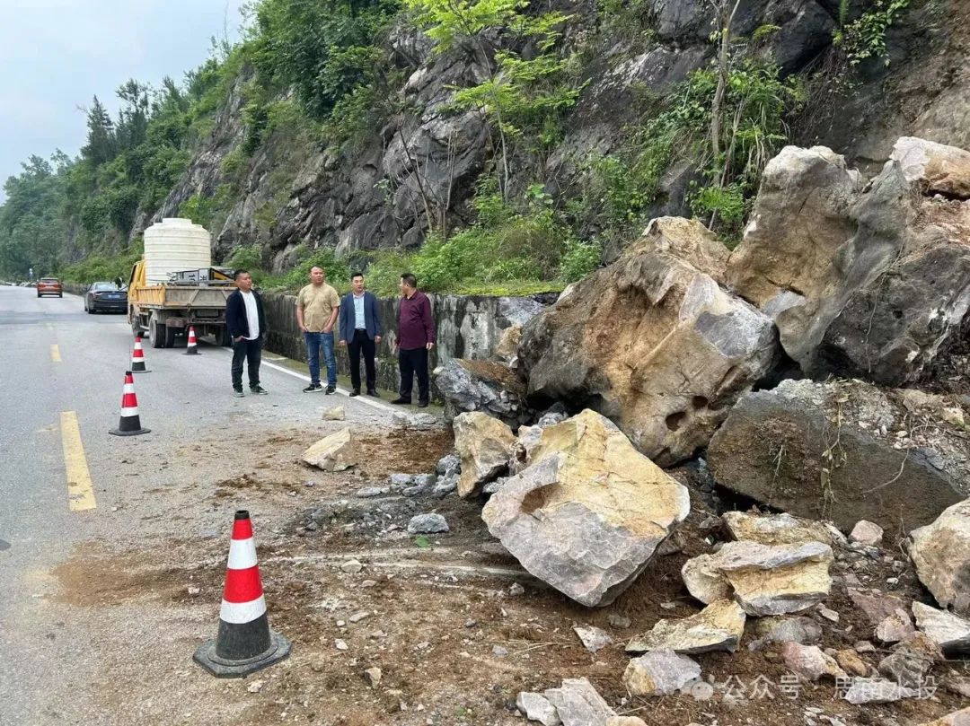 5月8日,县鑫禹公司董事长、总经理林亚铁协同县公路管理局相关人员到新思中后面查看压塌DN600供水主管落石,县鑫禹公司副总经理安勇参加。