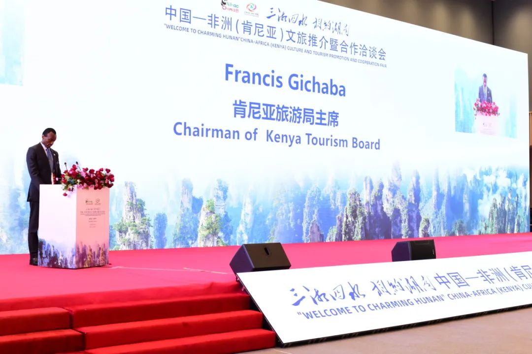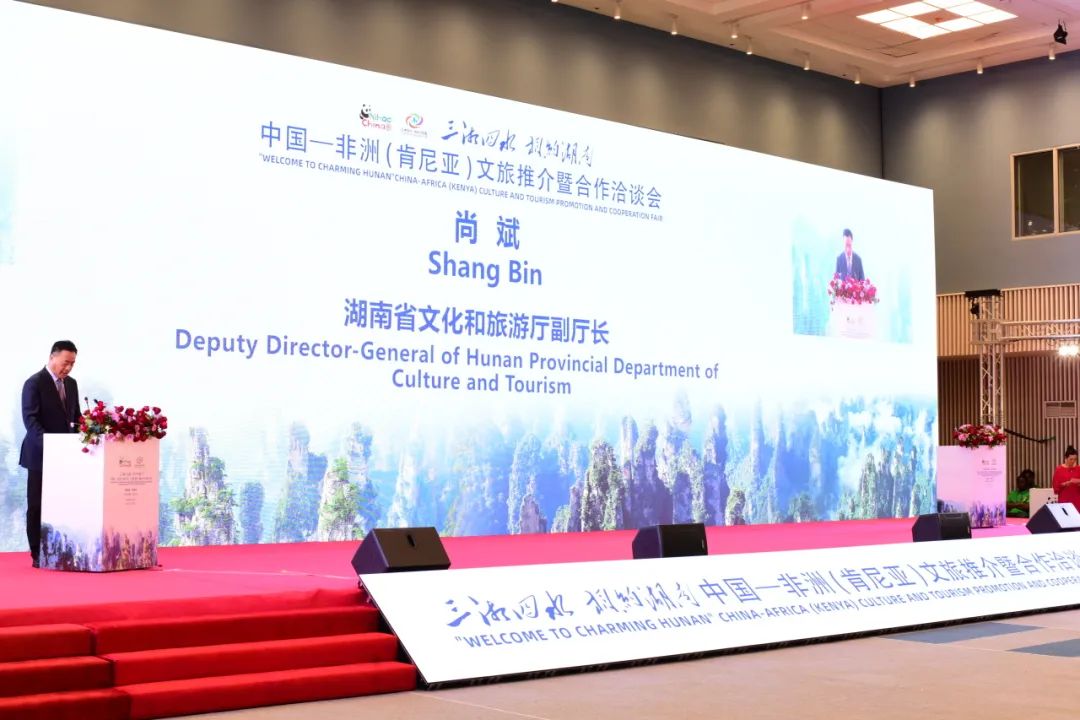 “三湘四水 相约湖南”中国—非洲(肯尼亚)文旅推介暨合作洽谈会由中非经贸博览会组委会秘书处、肯尼亚贸工部主办,湖南省文化和旅游厅和肯尼亚旅游局承办,是本次大会“1+3+1”形式的3场专题活动之一,涵盖文旅推介、项目签约和企业洽谈等多个方面。肯尼亚旅游和野生动物部部长和中国驻肯尼亚大使馆参赞唐建军出席并致辞,湖南省文化和旅游厅副厅长尚斌向嘉宾致欢迎辞。