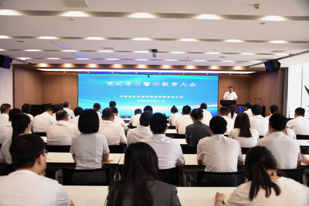 为扎实开展党纪学习教育,5月11日下午,河南农担公司召开党纪学习警示教育大会,教育引导全体干部员工以案为鉴、警钟长鸣,不断增强党纪党规观念,提高廉洁从业的自觉性。公司党委书记、董事长刁玉新出席会议并讲话,公司党委副书记、工会主席翟群丽主持会议并通报典型案例。