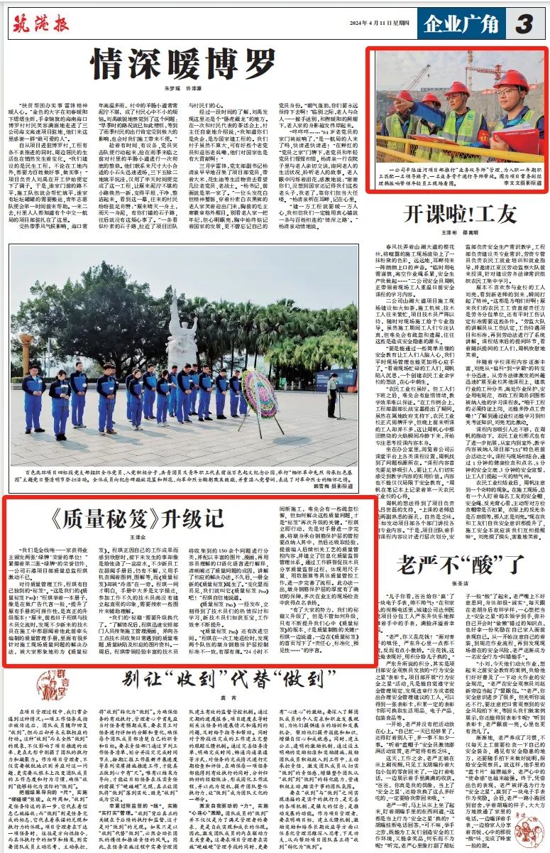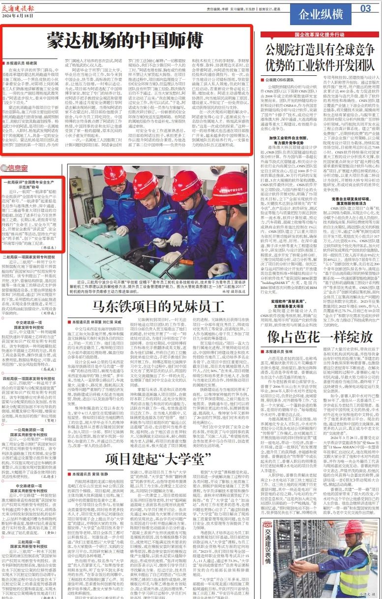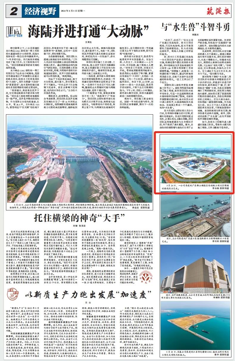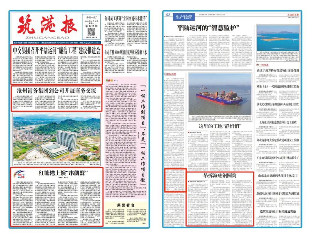 公司中标北京朝阳区土地开发市政道路及配套管线项目、顺德伦桂路工程沉管预制试验段浇注完成、平陆运河企石枢纽船闸省水池首仓混凝土顺利完成浇注的消息登上版面,收获关注。