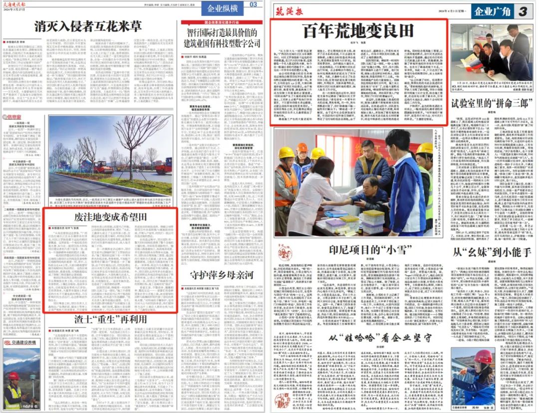 在广西百色,第十六项目部巧用路基换填出的淤泥、腐蚀土改造村中荒废的低洼沼泽地,使《废洼地变成希望田》,盘活废土、《百年荒地变良田》,让青山不断焕发生机。