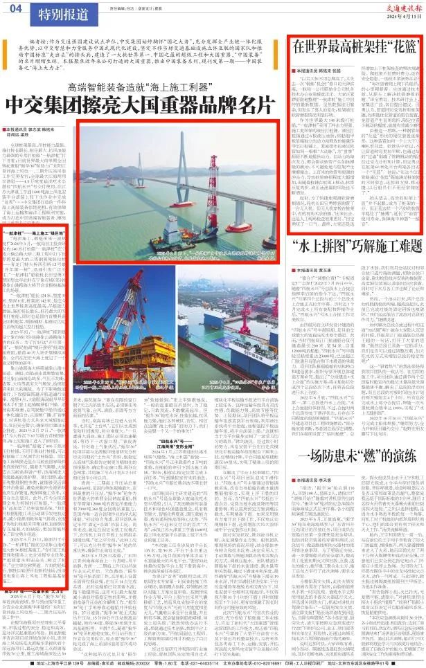公司坚定不移以航一智慧和力量服务中国式现代化建设,建造了一批向海图强的大国重器,擦亮以“一航津桩”为代表的船舶名片。“一航津桩”亮相在集团报中国装备系列专版第一期《中国装备之——海上大力士》,以图文报道的形式深入讲述《海上施工“绿巨轮”》与《在世界最高桩架挂“花篮”》的故事,推广了公司船舶品牌。