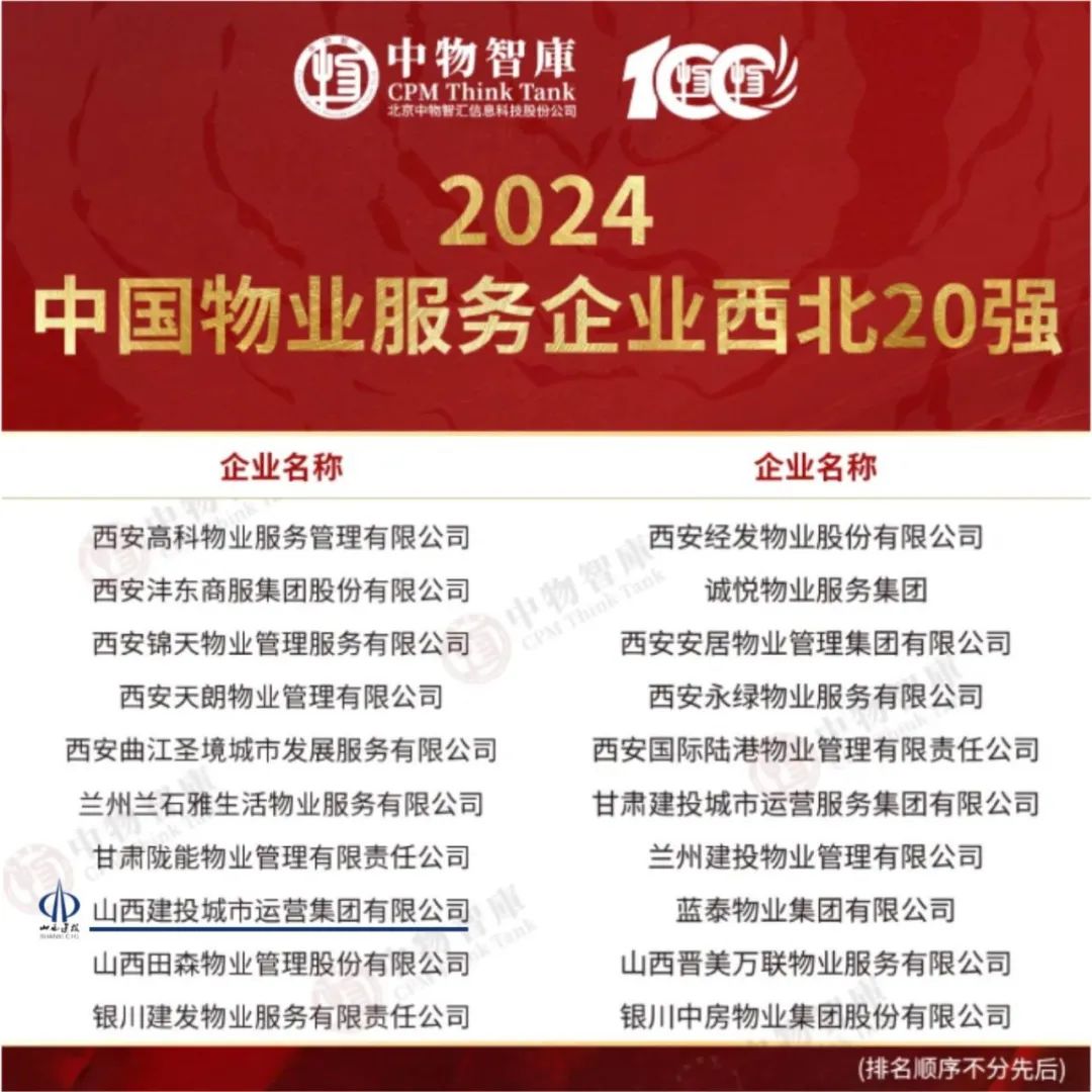 5月8日,在中物智库主办的2024中国物业综合实力百强企业研究发布会上,城市运营集团凭借卓越的服务品质和行业影响力,荣膺“2024中国物业服务企业西北20强”的殊荣。(物业管理中心)