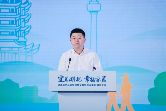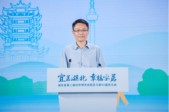 湖北省住房和城乡建设厅房地产市场监管处处长李剑为会议致辞。他表示,今年以来,党中央、国务院,和湖北省委省政府多次在重要会议上提到房地产新发展模式、高品质住房。高品质住房已经成为了一个不可忽视的趋势。今年年初,省住建厅和省自然资源厅联合印发了《湖北省推进高品质住宅建设的工作方案》,希望房企抓住时代机遇,加快转型发展,建设符合市场需求、满足人民群众对美好生活向往的高品质住宅。同时也希望省房协继续以协会的桥梁纽带作用为工作抓手,和会员单位携手共进,在服务湖北经济社会发展大局中主动作为、建功立业。
