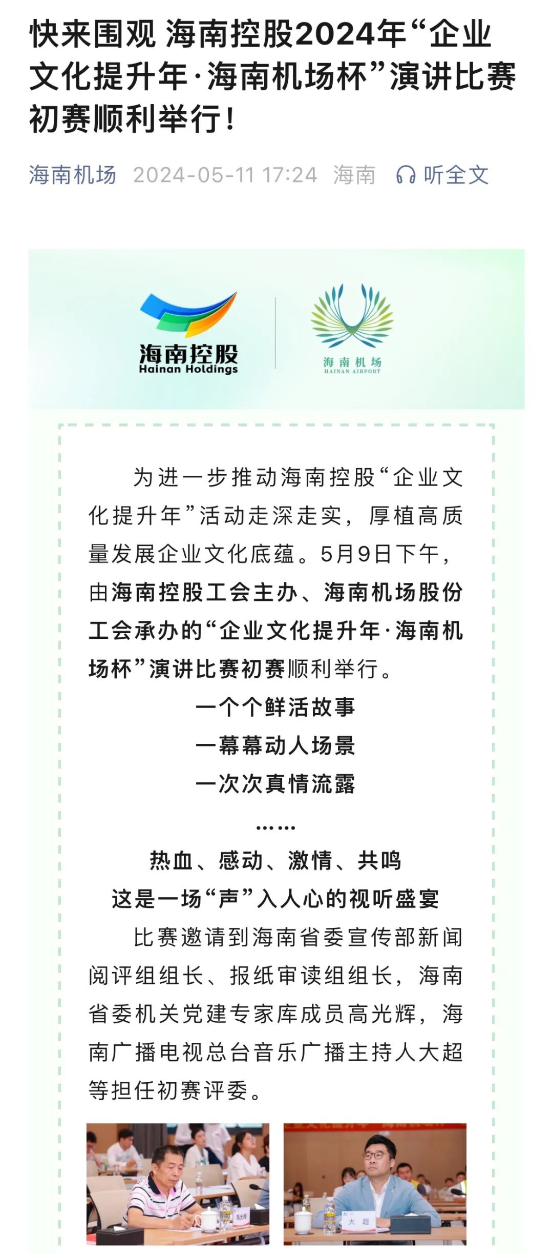 快来围观 海南控股2024年“企业文化提升年·海南机场杯”演讲比赛初赛顺利举行!