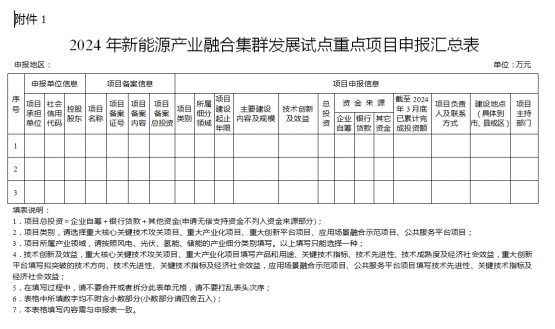 附件:1、2024年新能源产业融合集群发展试点重点项目申报汇总表.doc