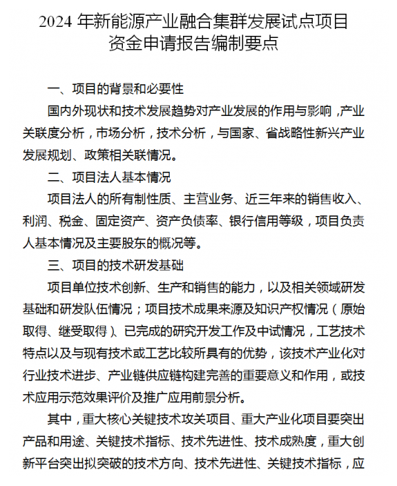 4、2024年新能源产业融合集群发展试点项目资金申请报告.doc