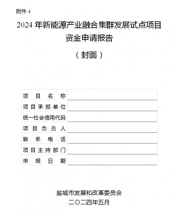 为做好2024年盐城市新能源产业融合集群发展试点专项资金项目申报工作,根据《盐城市新能源产业融合集群发展试点专项资金管理办法》(盐财建〔2024〕1号)等文件精神,现将有关事项通知如下。