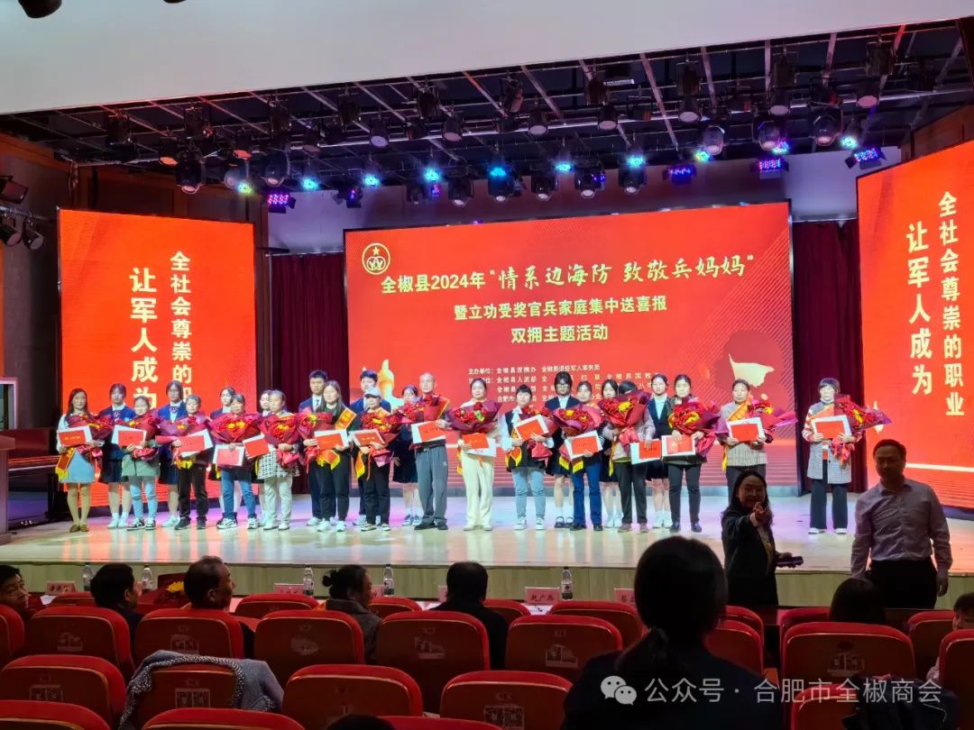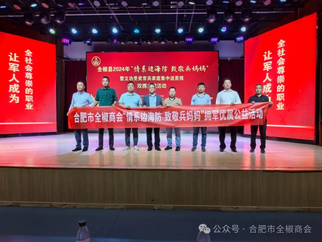 无论是雪域高原、戈壁大漠,还是大山深处、寂寥海岛,边海防官兵始终扎根在祖国和人民需要的每一个角落,用坚守诠释 奉献精神,用负重前行守卫岁月静好。为深入贯彻落实习近平总书记关于双拥工作重要指示精神,进一步弘扬拥军优属优良传 统,关心关爱戍边卫国边海防官兵,激发一线官兵戍边卫国斗志决心,积极营造“一人立功,全家光荣”的浓厚氛围。合肥市全椒商会于5月11日上午9点在县文化馆参加“'情系边海防致敬兵妈 妈'暨立功受奖官兵家庭集中送喜报双拥主题活动”公益活动。